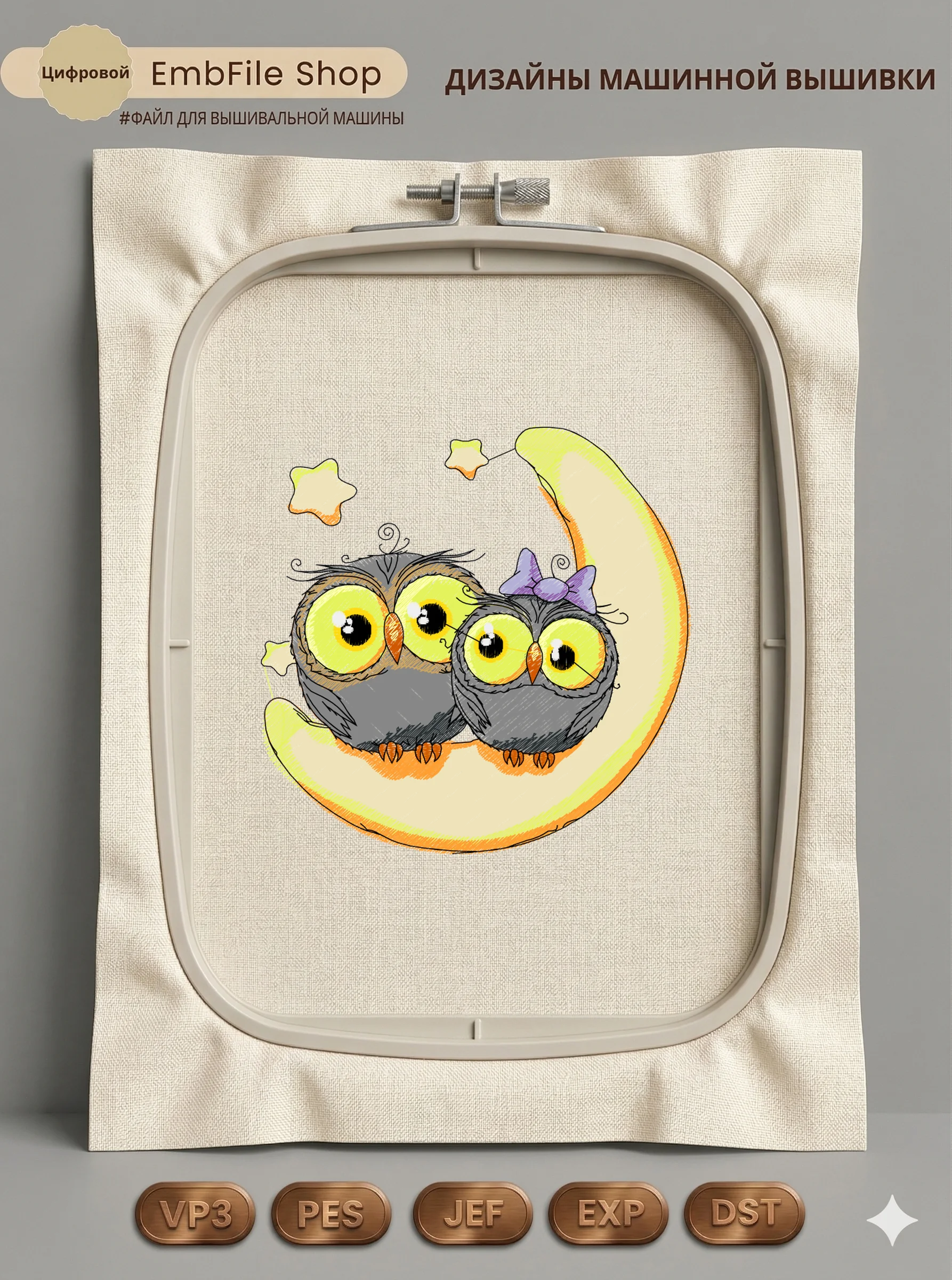 Это цифровой файл для вышивальной машины, а не физический товар (нашивка). Для работы с файлом вам необходимо иметь вышивальную машину и способ передачи файла на устройство (USB-флешка и т.д.).