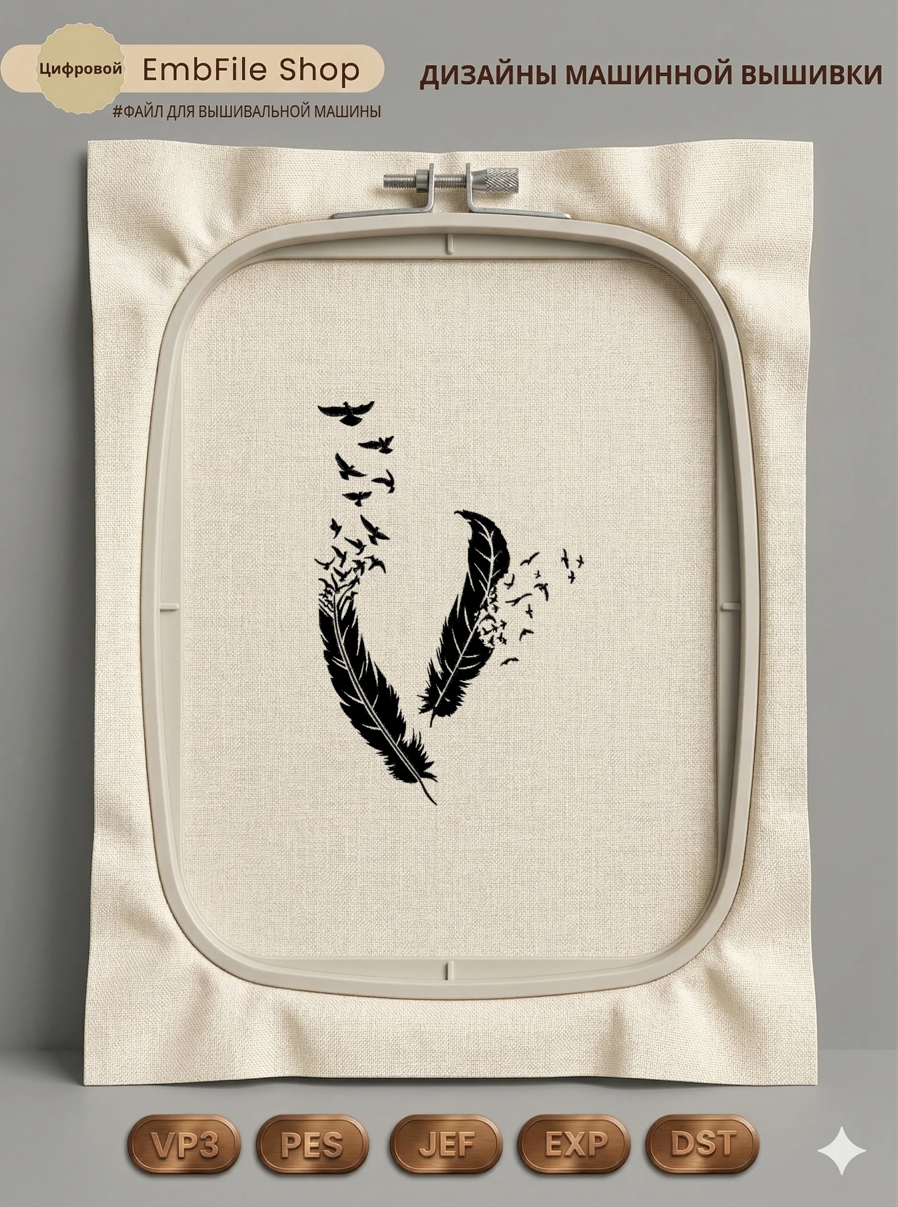 Это цифровой файл для вышивальной машины, а не физический товар (нашивка). Для работы с файлом вам необходимо иметь вышивальную машину и способ передачи файла на устройство (USB-флешка и т.д.).