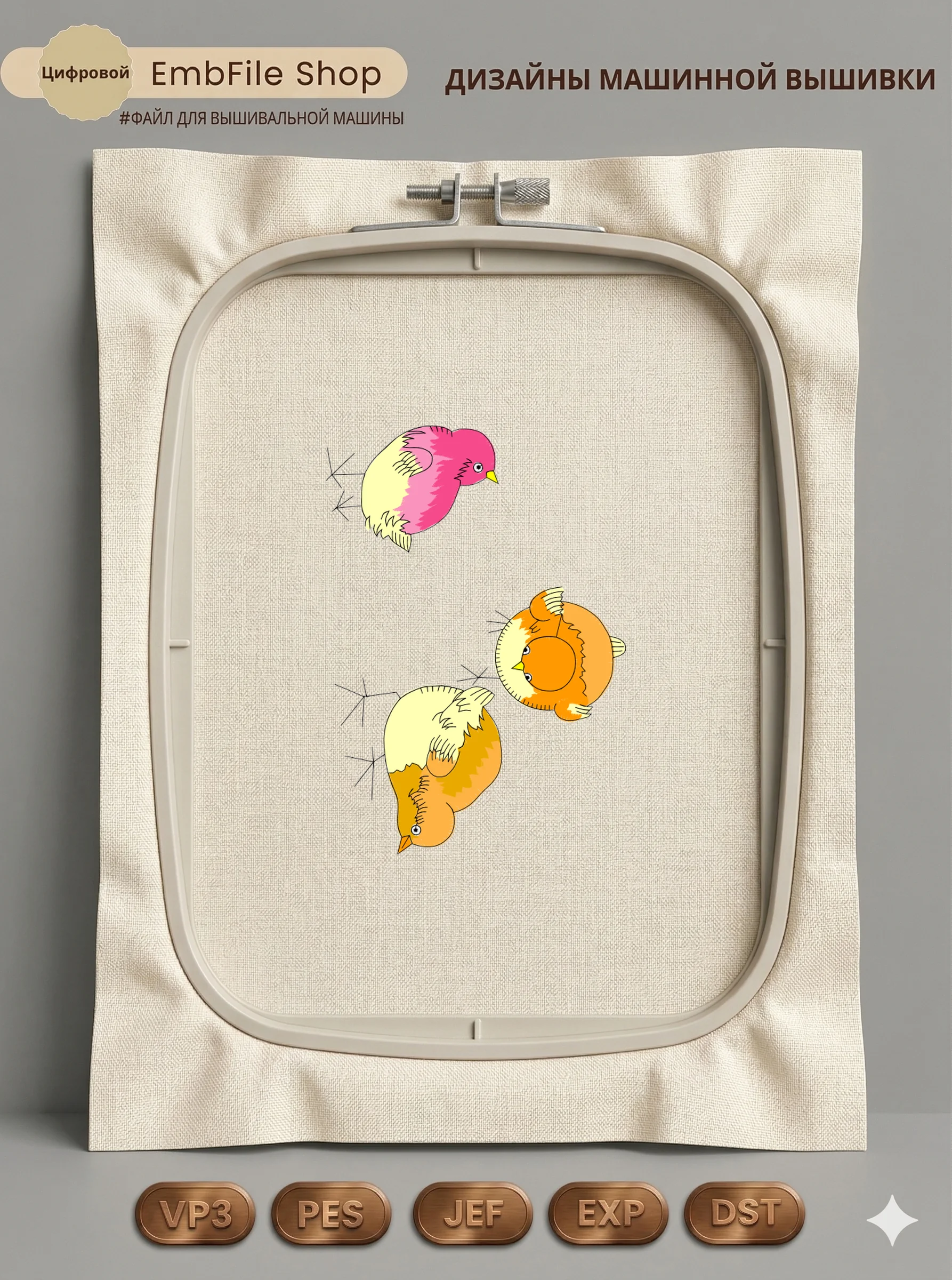 Дизайн машинной вышивки. Птицы (Размер 141×202мм). Форматы: DST PES JEF VP3 EXP XXX . Стежков: 21069