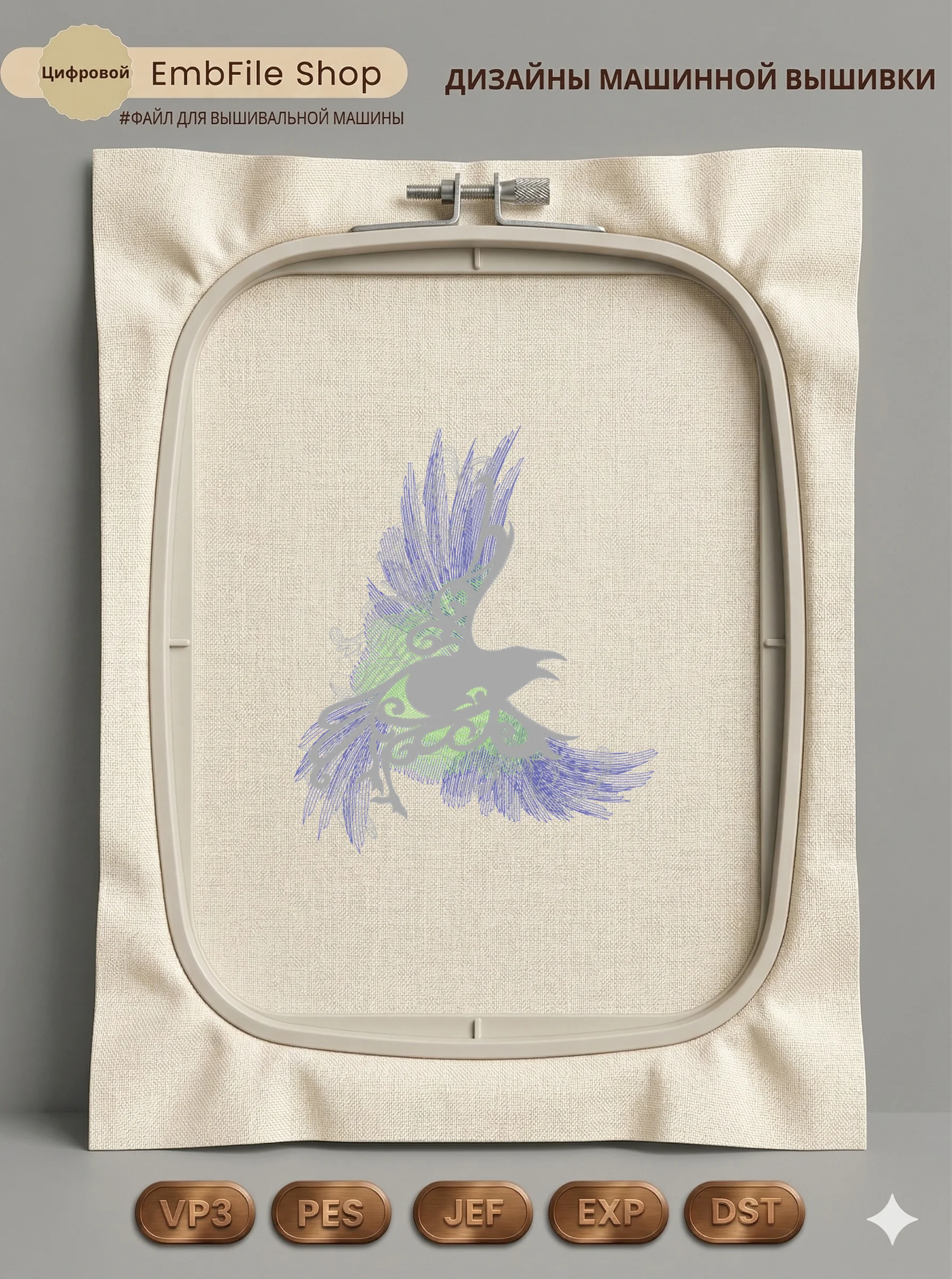 Это цифровой файл для вышивальной машины, а не физический товар (нашивка). Для работы с файлом вам необходимо иметь вышивальную машину и способ передачи файла на устройство (USB-флешка и т.д.).