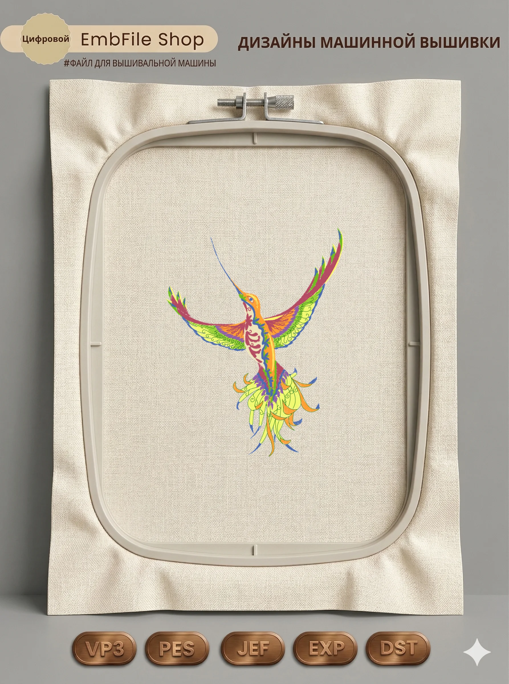 Это цифровой файл для вышивальной машины, а не физический товар (нашивка). Для работы с файлом вам необходимо иметь вышивальную машину и способ передачи файла на устройство (USB-флешка и т.д.).