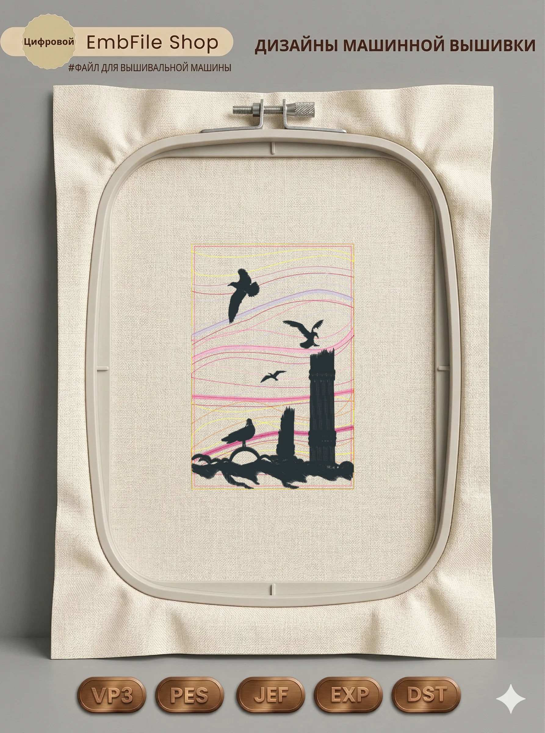 Это цифровой файл для вышивальной машины, а не физический товар (нашивка). Для работы с файлом вам необходимо иметь вышивальную машину и способ передачи файла на устройство (USB-флешка и т.д.).
