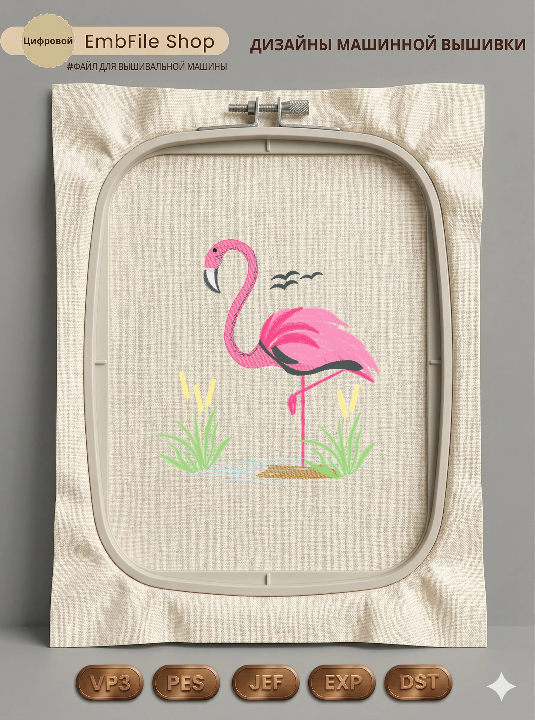 Это цифровой файл для вышивальной машины, а не физический товар (нашивка). Для работы с файлом вам необходимо иметь вышивальную машину и способ передачи файла на устройство (USB-флешка и т.д.).