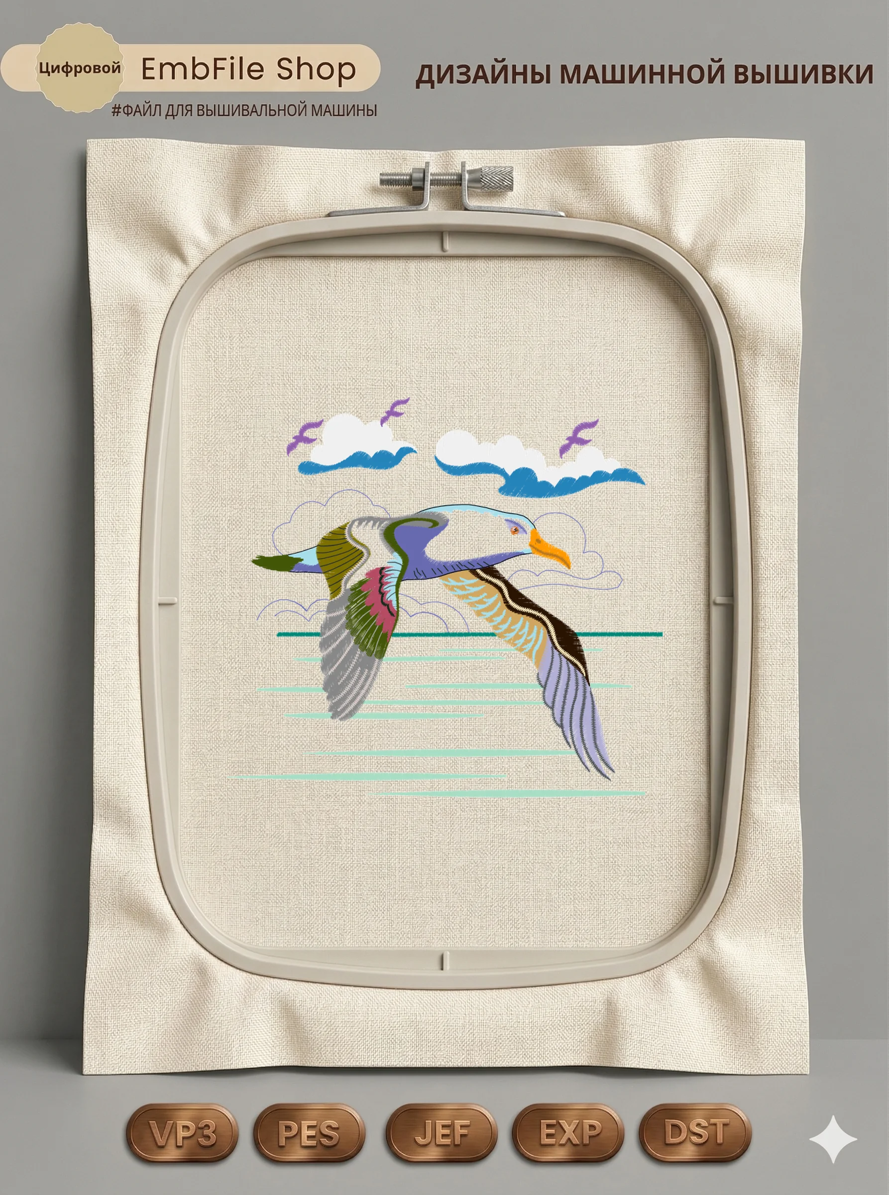 Это цифровой файл для вышивальной машины, а не физический товар (нашивка). Для работы с файлом вам необходимо иметь вышивальную машину и способ передачи файла на устройство (USB-флешка и т.д.).