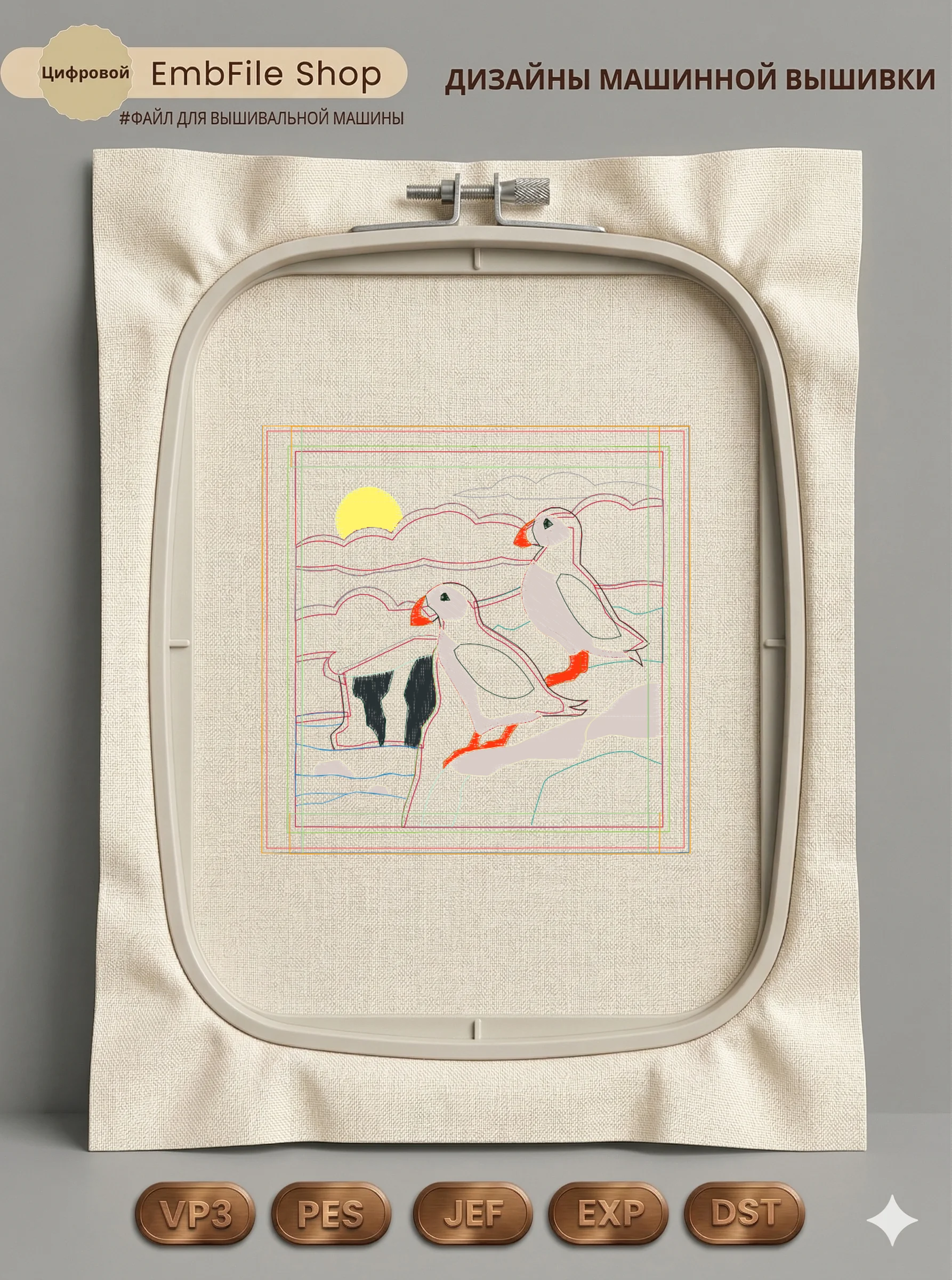 Это цифровой файл для вышивальной машины, а не физический товар (нашивка). Для работы с файлом вам необходимо иметь вышивальную машину и способ передачи файла на устройство (USB-флешка и т.д.).