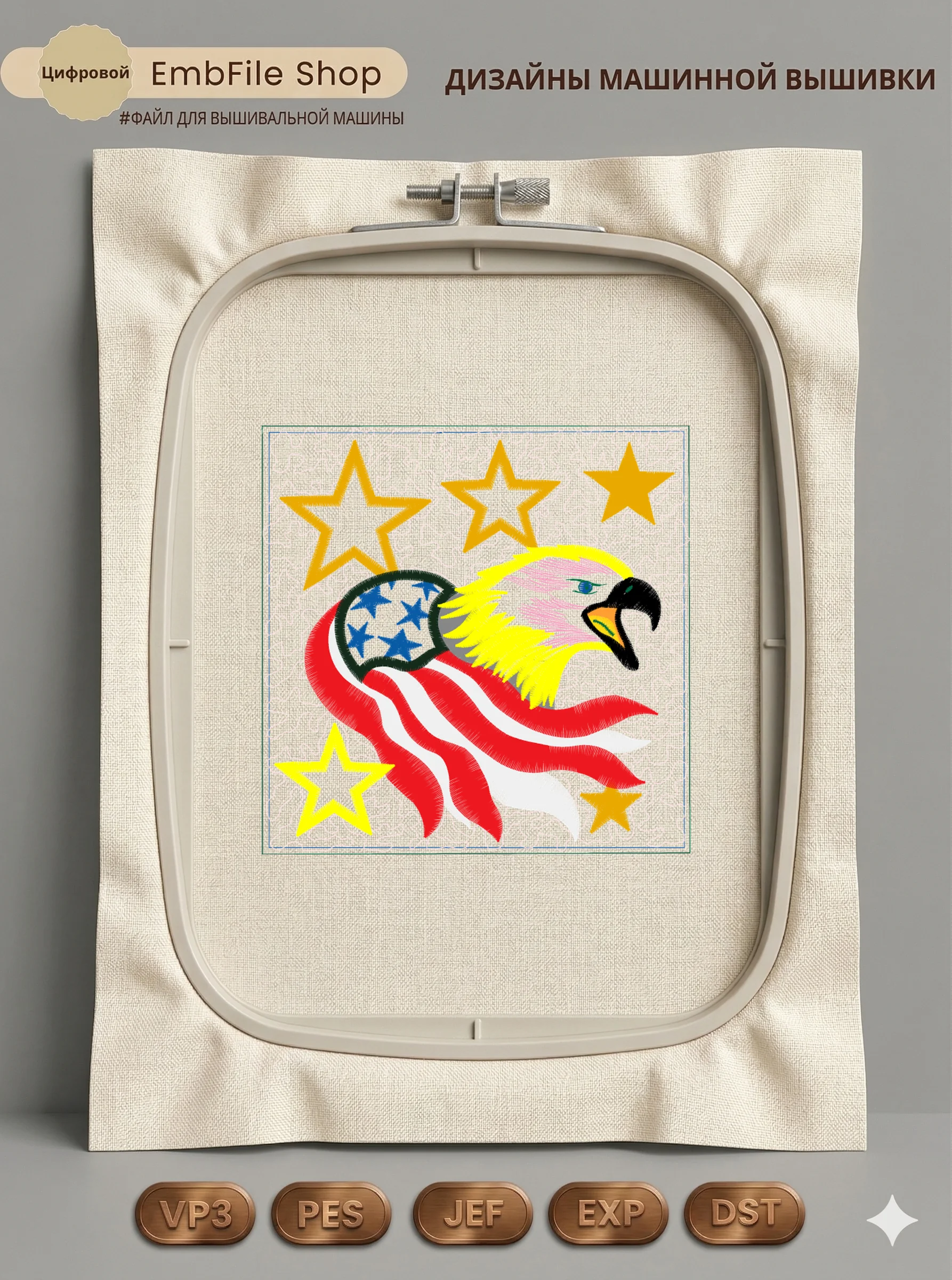 Это цифровой файл для вышивальной машины, а не физический товар (нашивка). Для работы с файлом вам необходимо иметь вышивальную машину и способ передачи файла на устройство (USB-флешка и т.д.).
