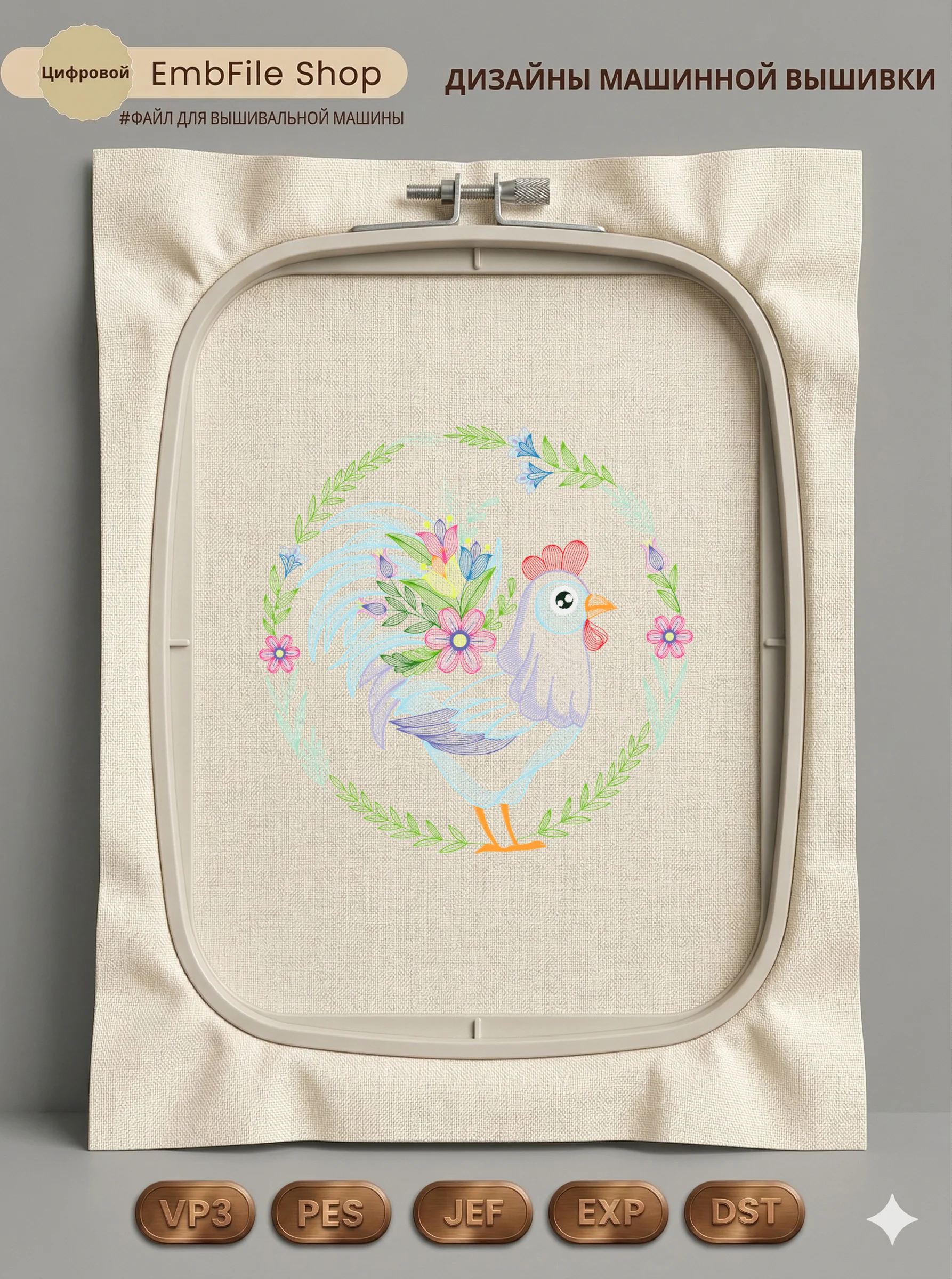 Это цифровой файл для вышивальной машины, а не физический товар (нашивка). Для работы с файлом вам необходимо иметь вышивальную машину и способ передачи файла на устройство (USB-флешка и т.д.).