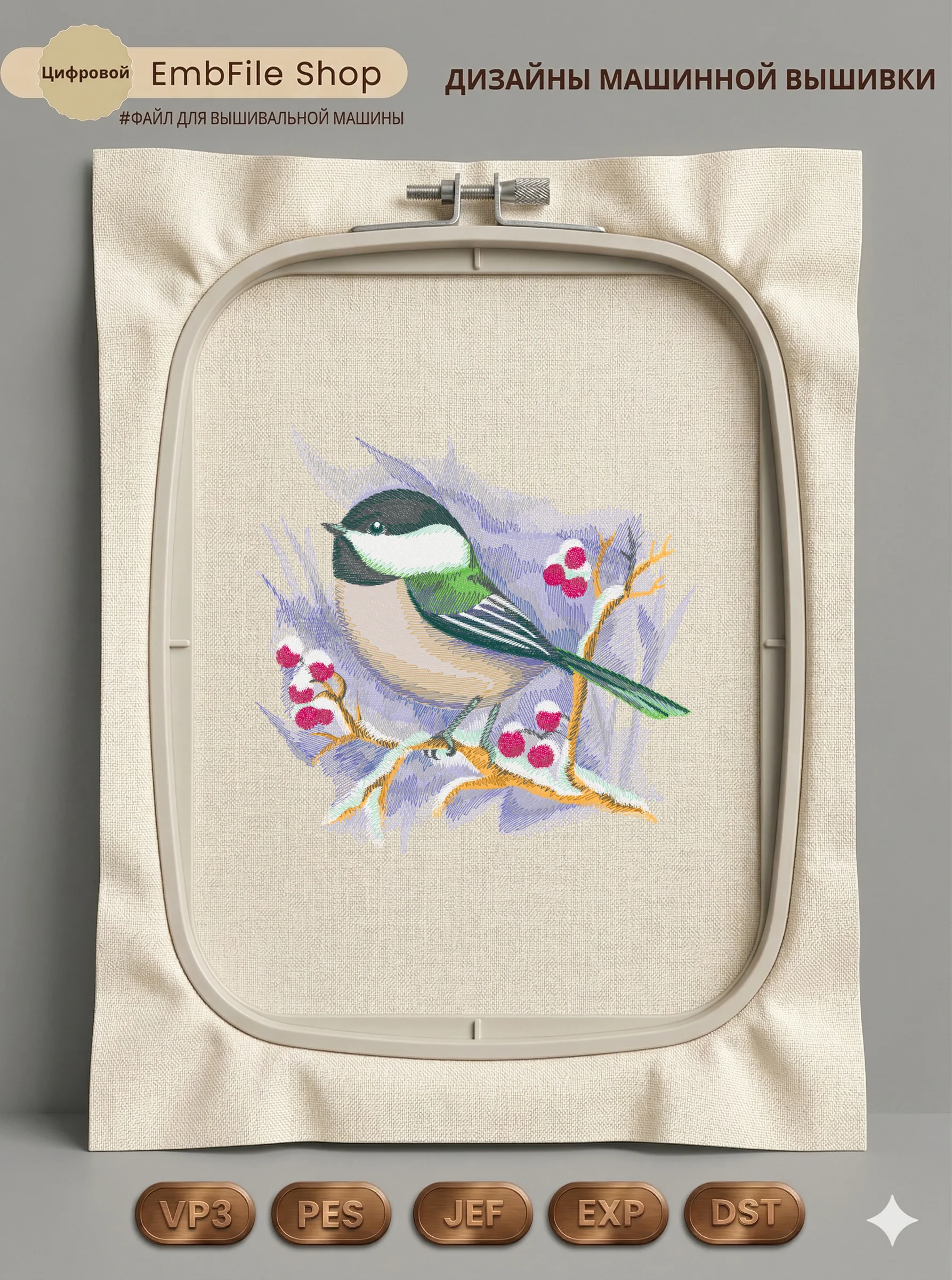 Это цифровой файл для вышивальной машины, а не физический товар (нашивка). Для работы с файлом вам необходимо иметь вышивальную машину и способ передачи файла на устройство (USB-флешка и т.д.).