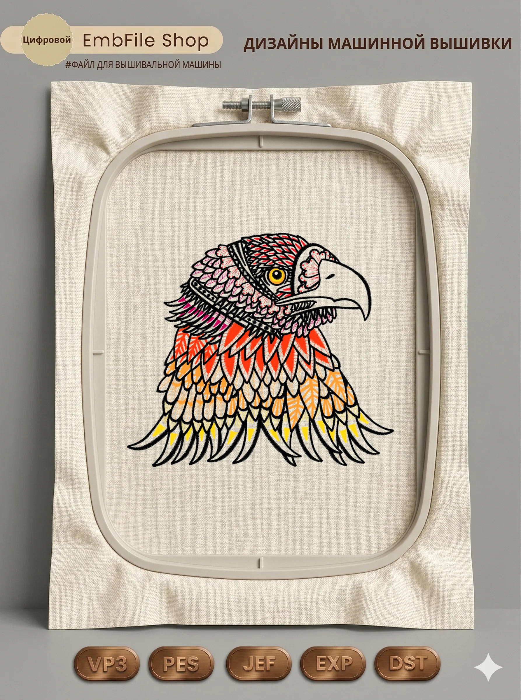 Это цифровой файл для вышивальной машины, а не физический товар (нашивка). Для работы с файлом вам необходимо иметь вышивальную машину и способ передачи файла на устройство (USB-флешка и т.д.).