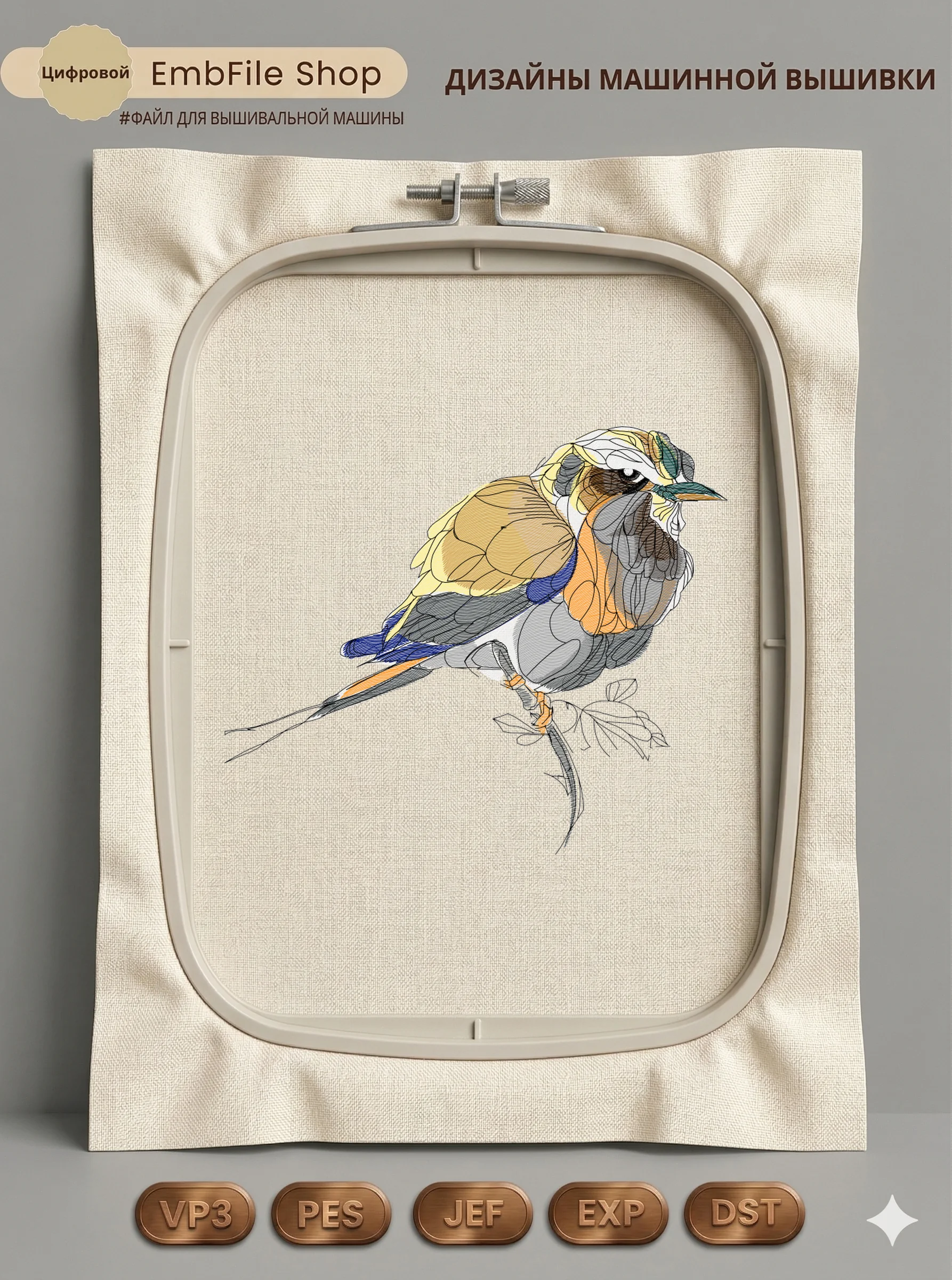 Это цифровой файл для вышивальной машины, а не физический товар (нашивка). Для работы с файлом вам необходимо иметь вышивальную машину и способ передачи файла на устройство (USB-флешка и т.д.).