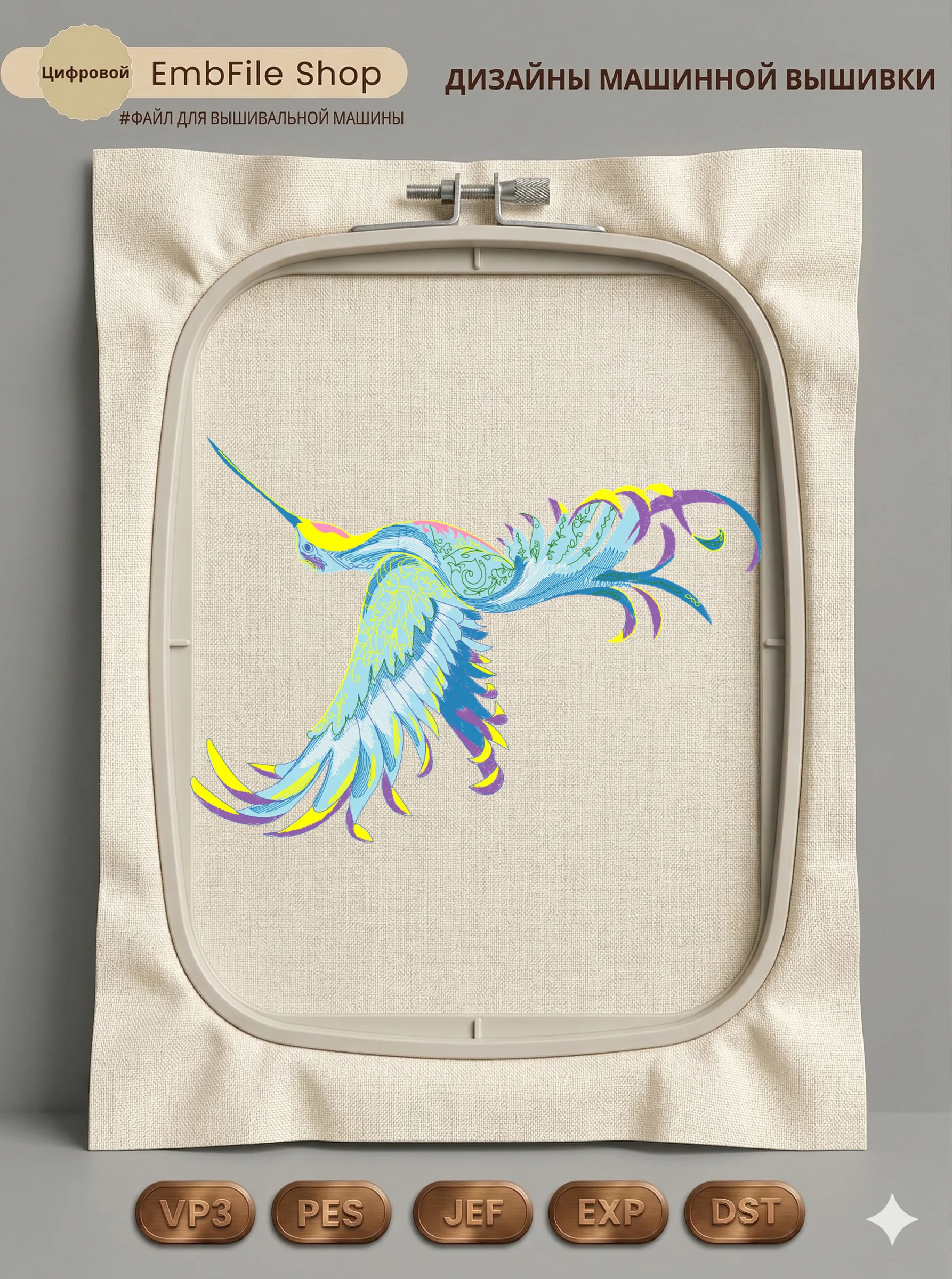Это цифровой файл для вышивальной машины, а не физический товар (нашивка). Для работы с файлом вам необходимо иметь вышивальную машину и способ передачи файла на устройство (USB-флешка и т.д.).