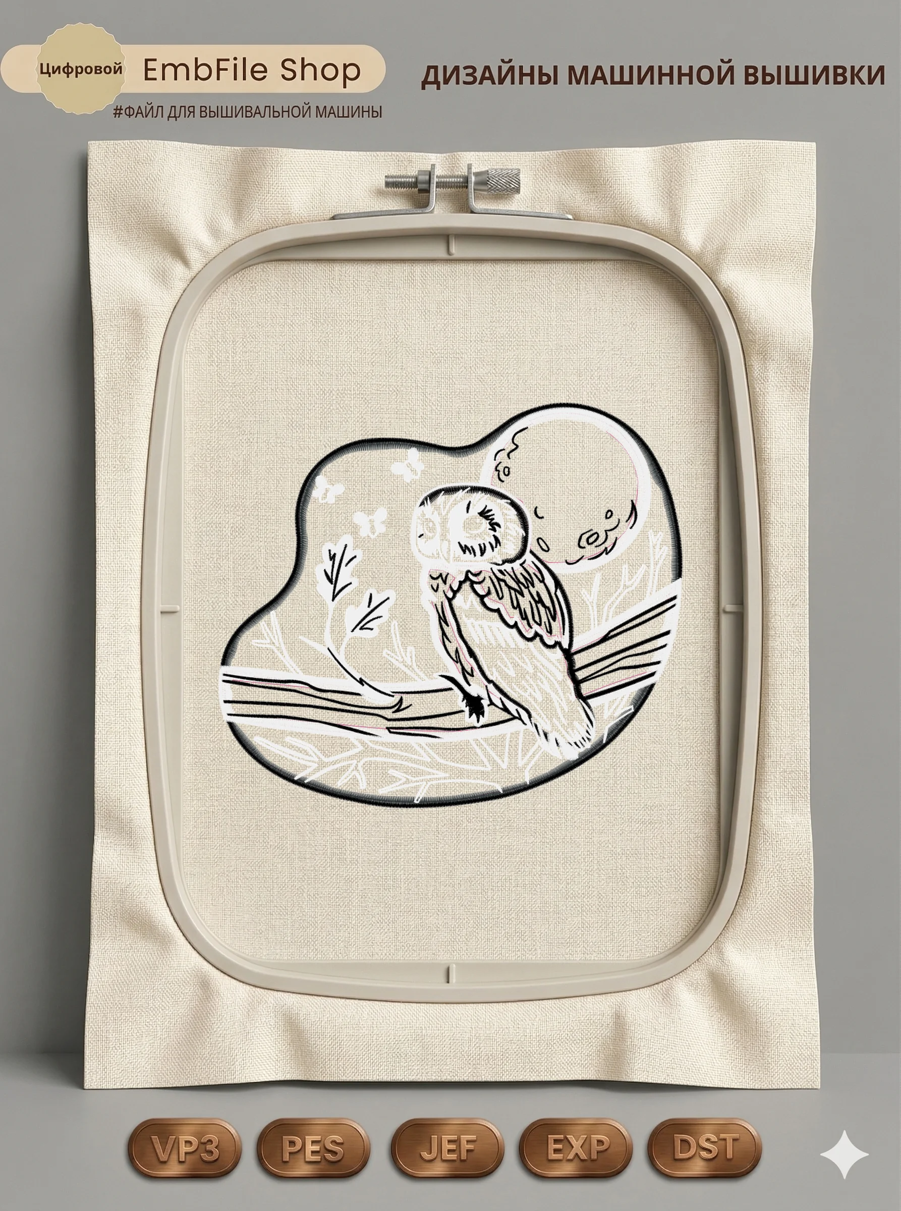 Это цифровой файл для вышивальной машины, а не физический товар (нашивка). Для работы с файлом вам необходимо иметь вышивальную машину и способ передачи файла на устройство (USB-флешка и т.д.).