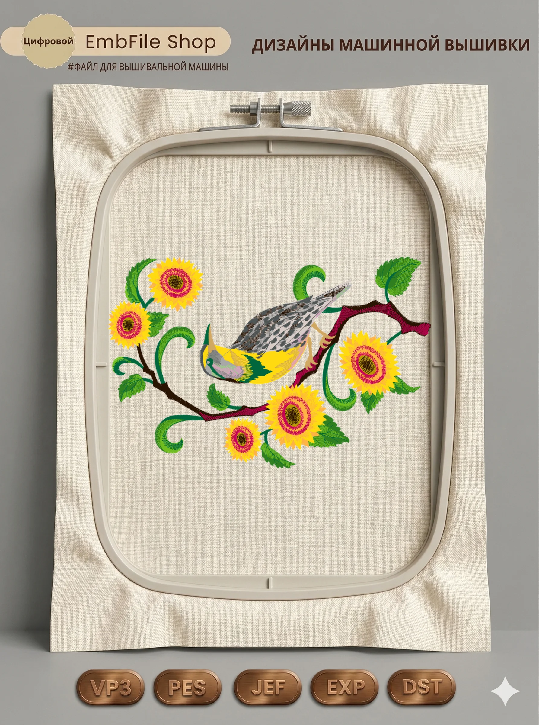 Это цифровой файл для вышивальной машины, а не физический товар (нашивка). Для работы с файлом вам необходимо иметь вышивальную машину и способ передачи файла на устройство (USB-флешка и т.д.).