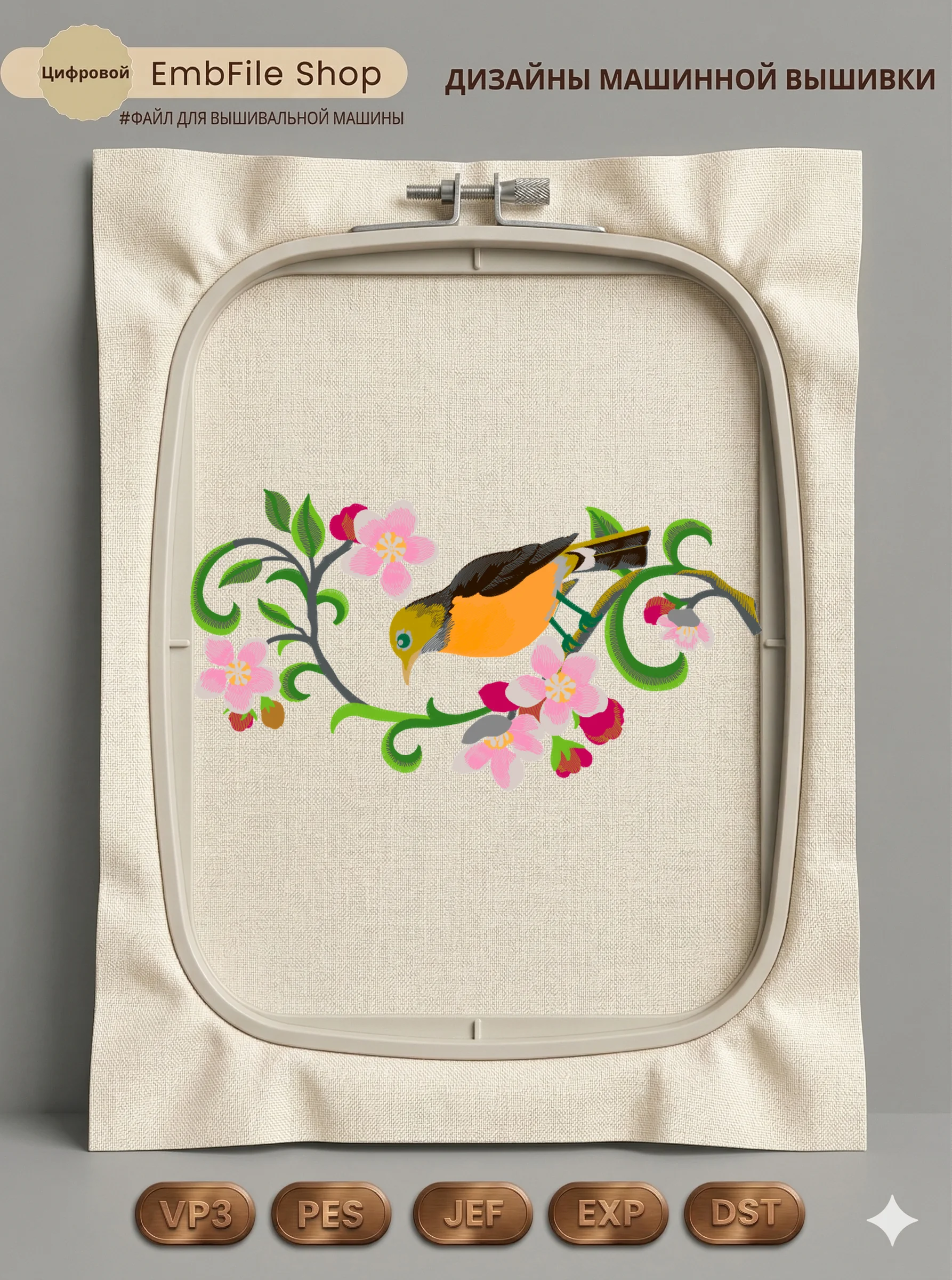 Это цифровой файл для вышивальной машины, а не физический товар (нашивка). Для работы с файлом вам необходимо иметь вышивальную машину и способ передачи файла на устройство (USB-флешка и т.д.).