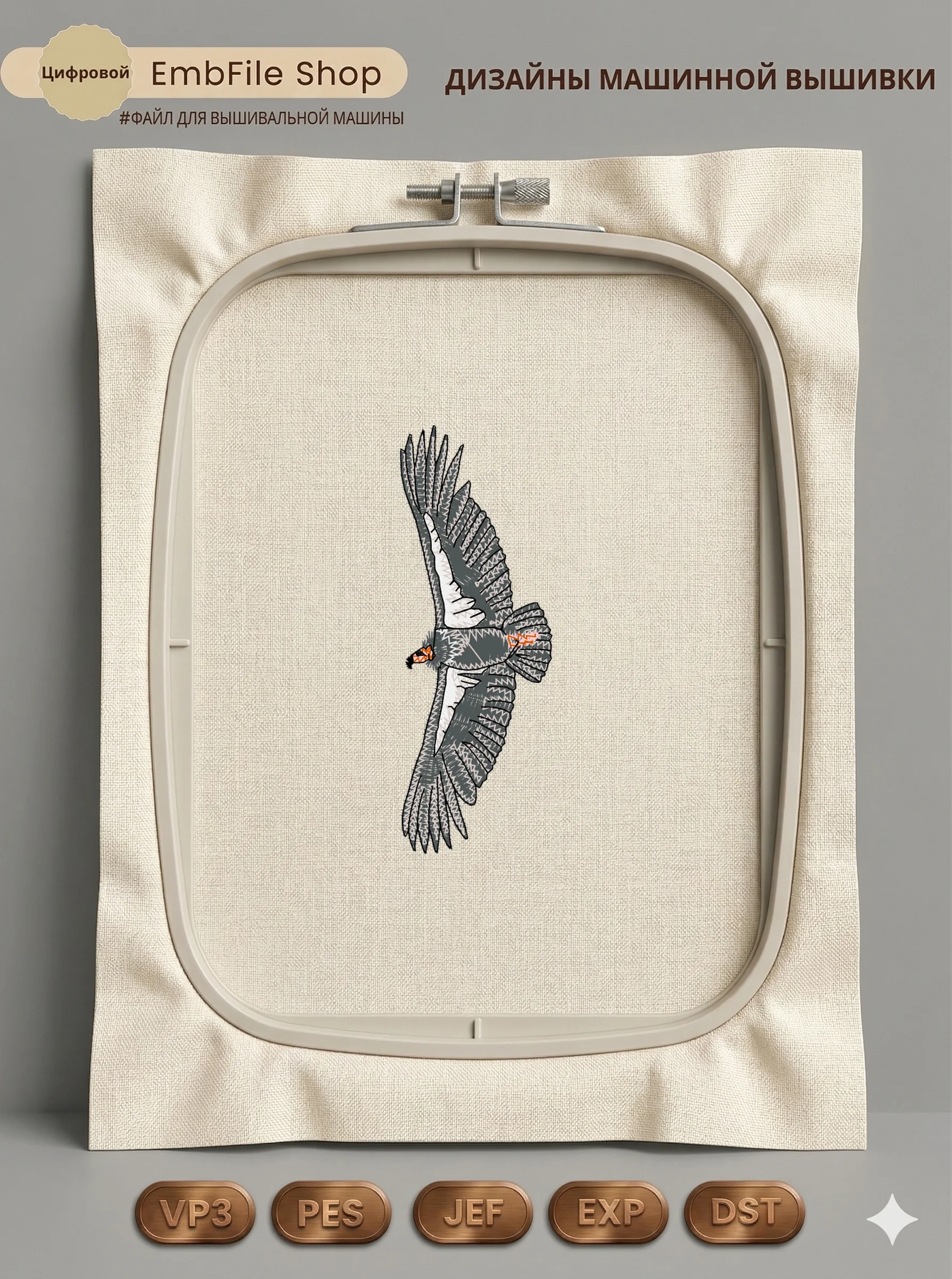 Это цифровой файл для вышивальной машины, а не физический товар (нашивка). Для работы с файлом вам необходимо иметь вышивальную машину и способ передачи файла на устройство (USB-флешка и т.д.).