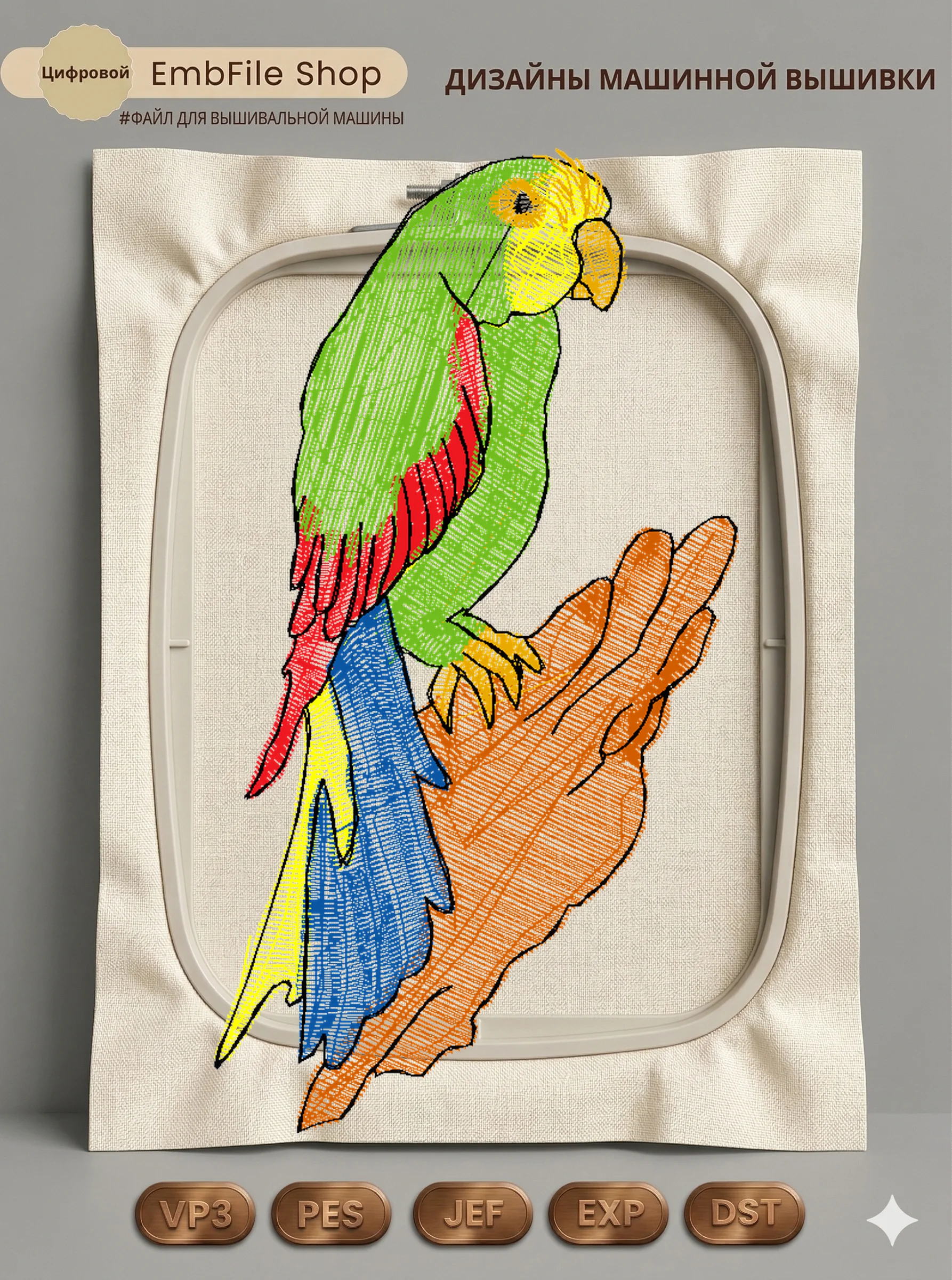 Это цифровой файл для вышивальной машины, а не физический товар (нашивка). Для работы с файлом вам необходимо иметь вышивальную машину и способ передачи файла на устройство (USB-флешка и т.д.).