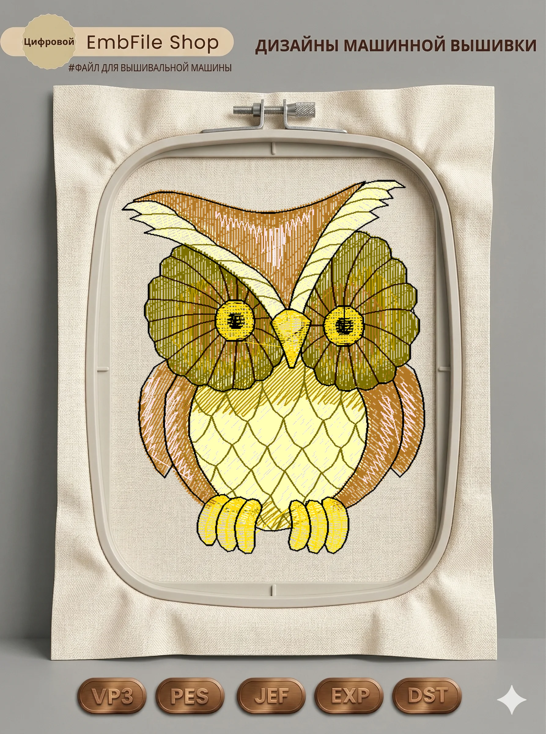 Это цифровой файл для вышивальной машины, а не физический товар (нашивка). Для работы с файлом вам необходимо иметь вышивальную машину и способ передачи файла на устройство (USB-флешка и т.д.).