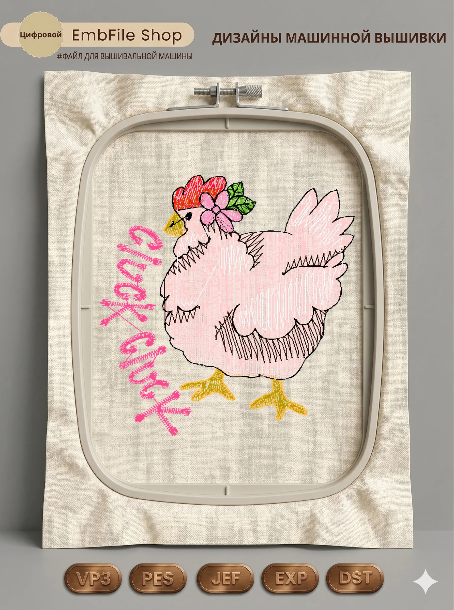 Это цифровой файл для вышивальной машины, а не физический товар (нашивка). Для работы с файлом вам необходимо иметь вышивальную машину и способ передачи файла на устройство (USB-флешка и т.д.).
