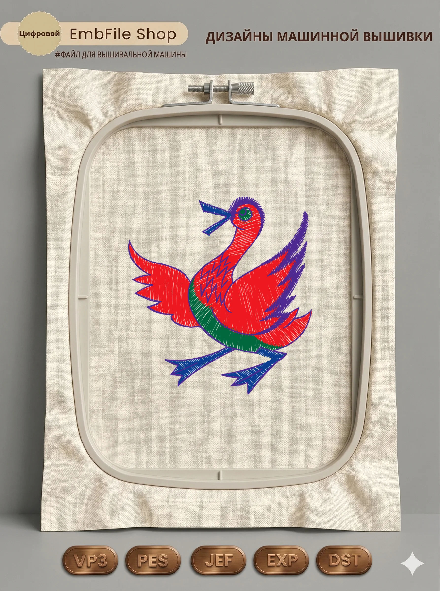 Это цифровой файл для вышивальной машины, а не физический товар (нашивка). Для работы с файлом вам необходимо иметь вышивальную машину и способ передачи файла на устройство (USB-флешка и т.д.).