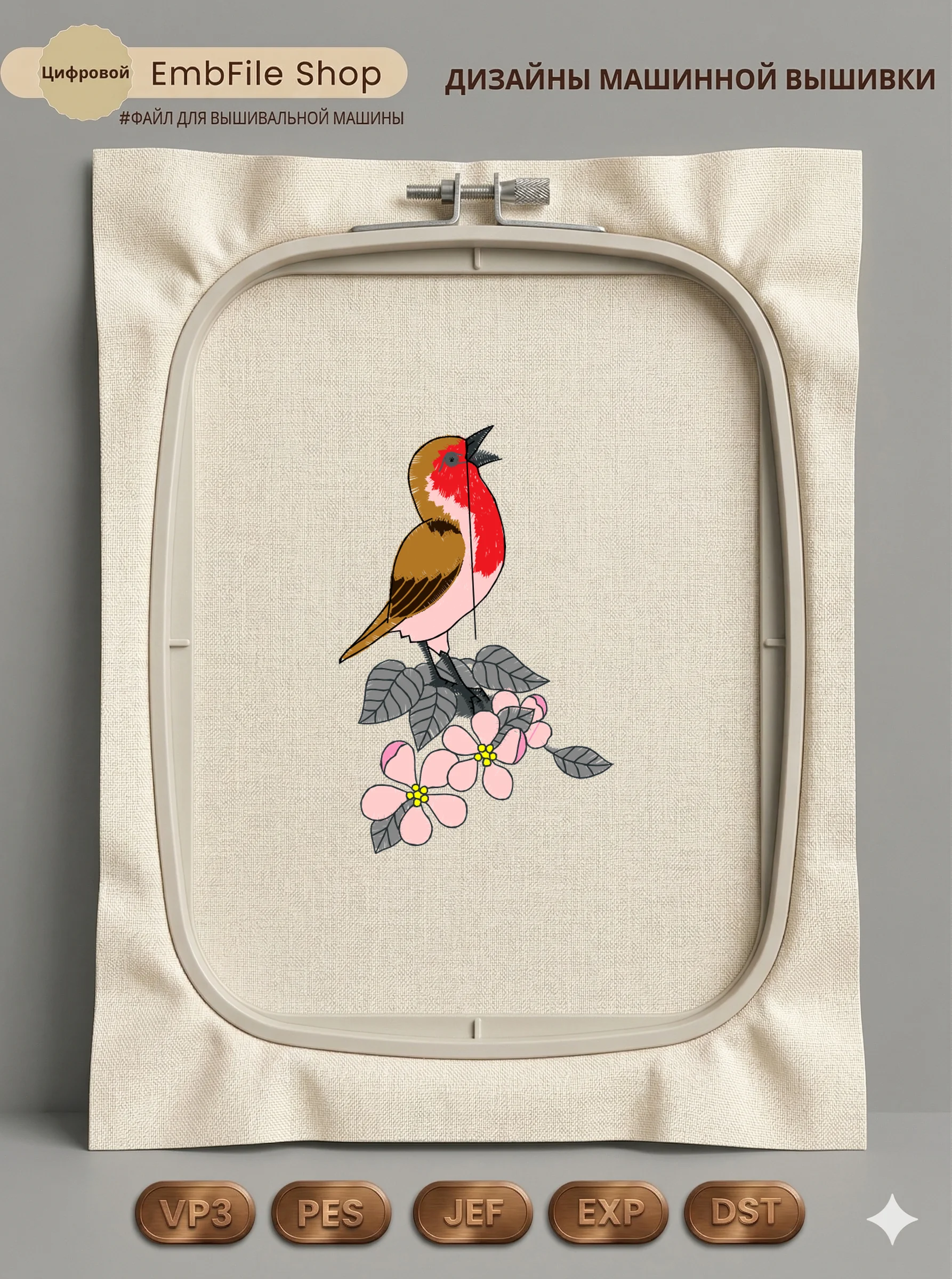Это цифровой файл для вышивальной машины, а не физический товар (нашивка). Для работы с файлом вам необходимо иметь вышивальную машину и способ передачи файла на устройство (USB-флешка и т.д.).