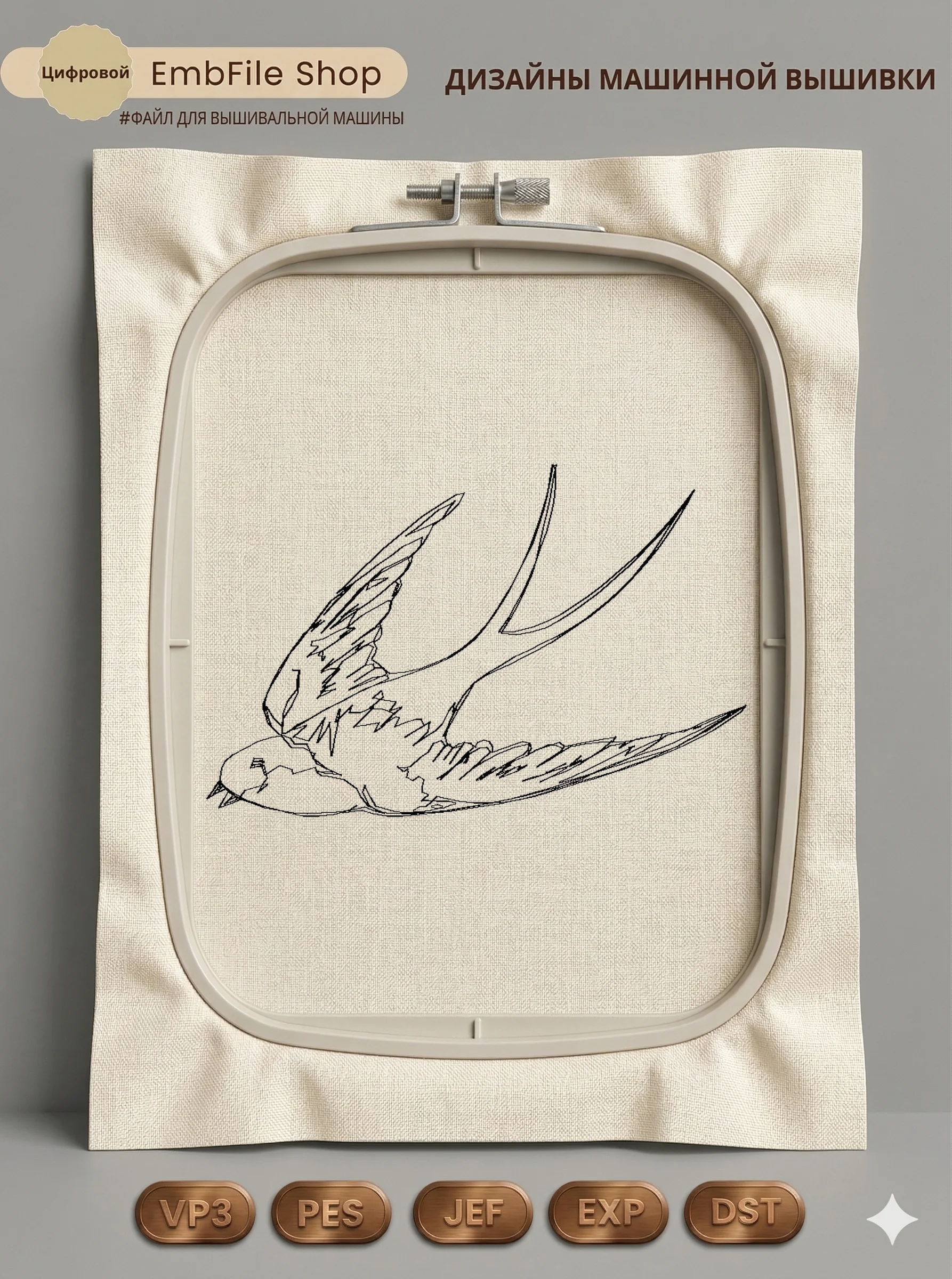 Дизайн протестирован на различных типах тканей, что гарантирует чистое и стабильное нанесение стежков.