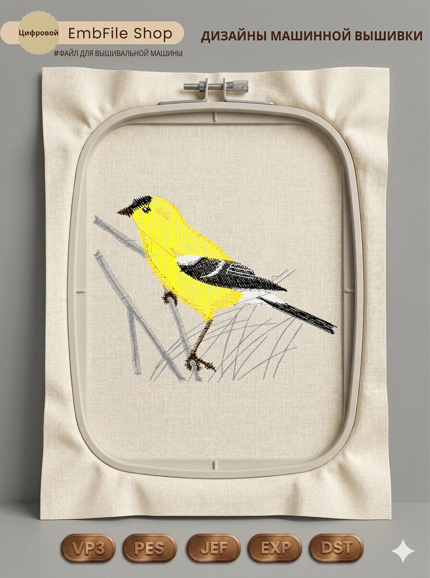 Это цифровой файл для вышивальной машины, а не физический товар (нашивка). Для работы с файлом вам необходимо иметь вышивальную машину и способ передачи файла на устройство (USB-флешка и т.д.).
