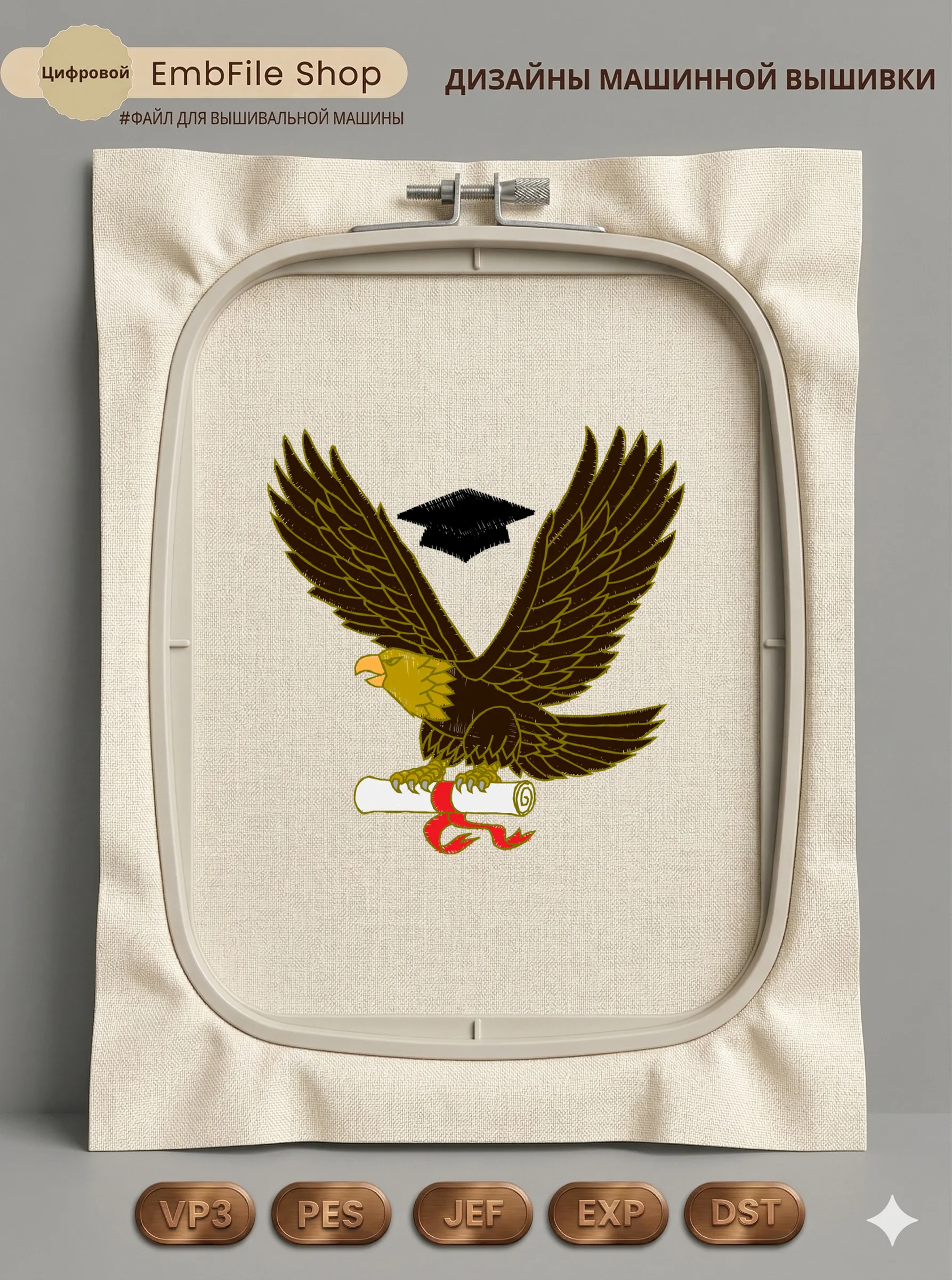 Это цифровой файл для вышивальной машины, а не физический товар (нашивка). Для работы с файлом вам необходимо иметь вышивальную машину и способ передачи файла на устройство (USB-флешка и т.д.).