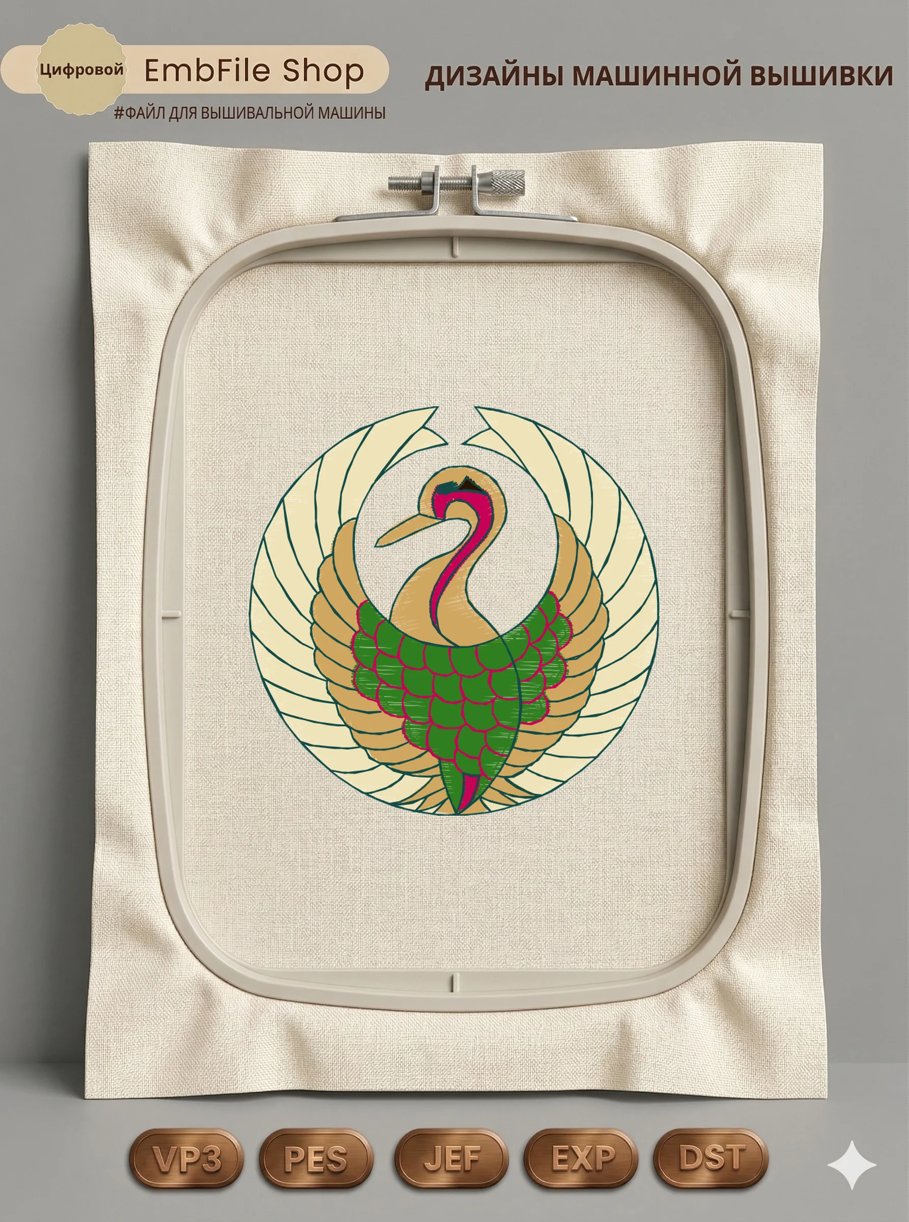 Это цифровой файл для вышивальной машины, а не физический товар (нашивка). Для работы с файлом вам необходимо иметь вышивальную машину и способ передачи файла на устройство (USB-флешка и т.д.).