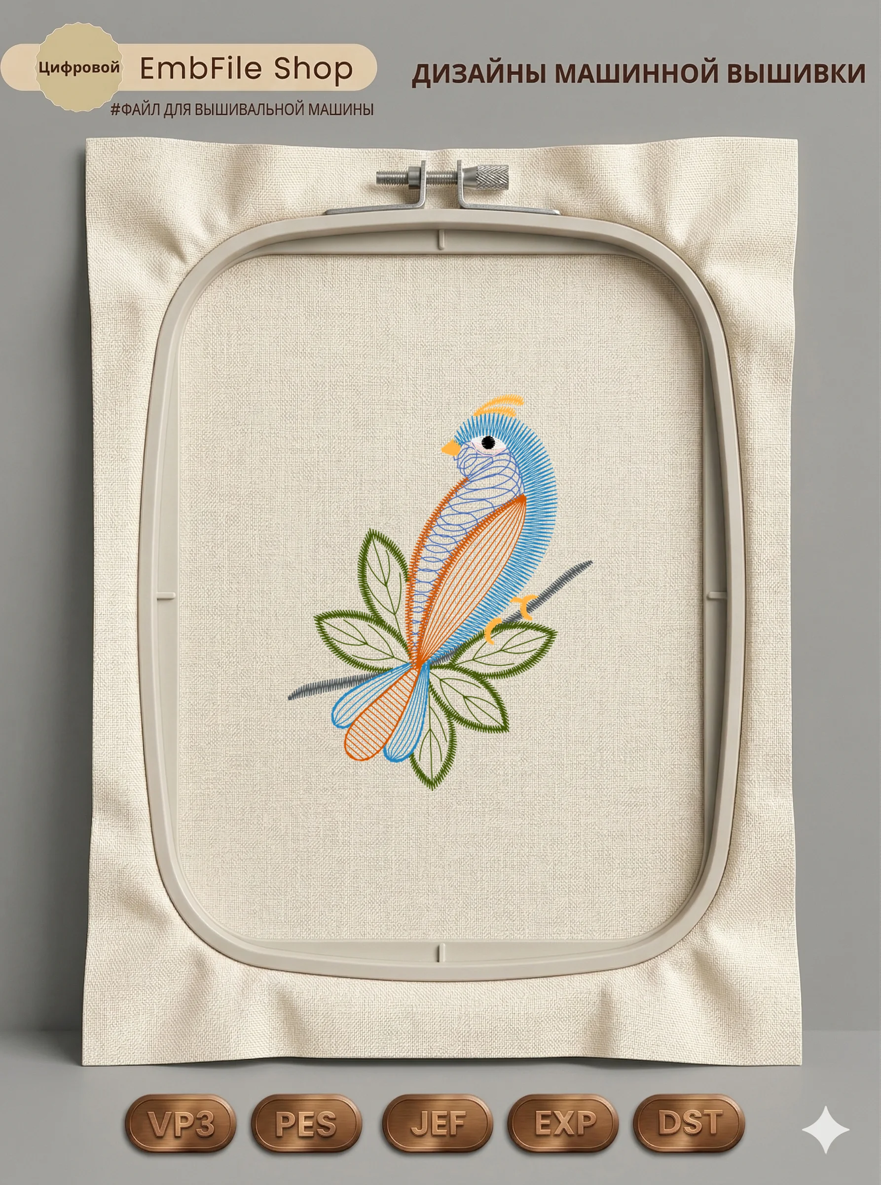 Дизайн протестирован на различных типах тканей, что гарантирует чистое и стабильное нанесение стежков.