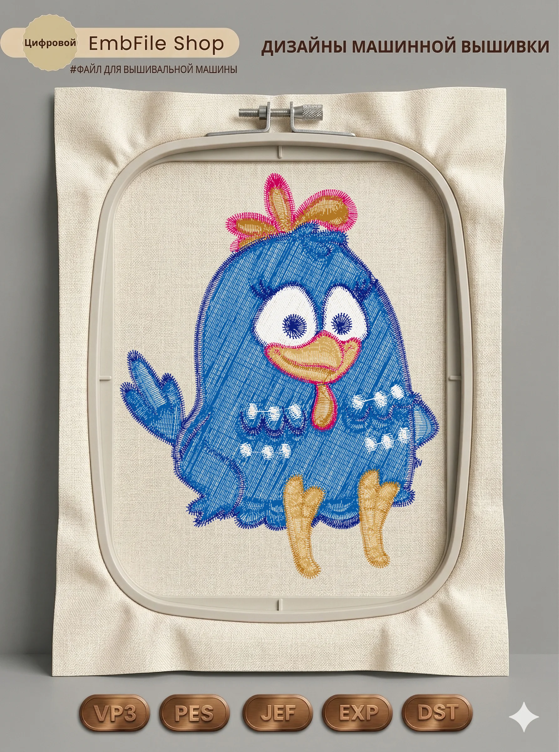 Это цифровой файл для вышивальной машины, а не физический товар (нашивка). Для работы с файлом вам необходимо иметь вышивальную машину и способ передачи файла на устройство (USB-флешка и т.д.).