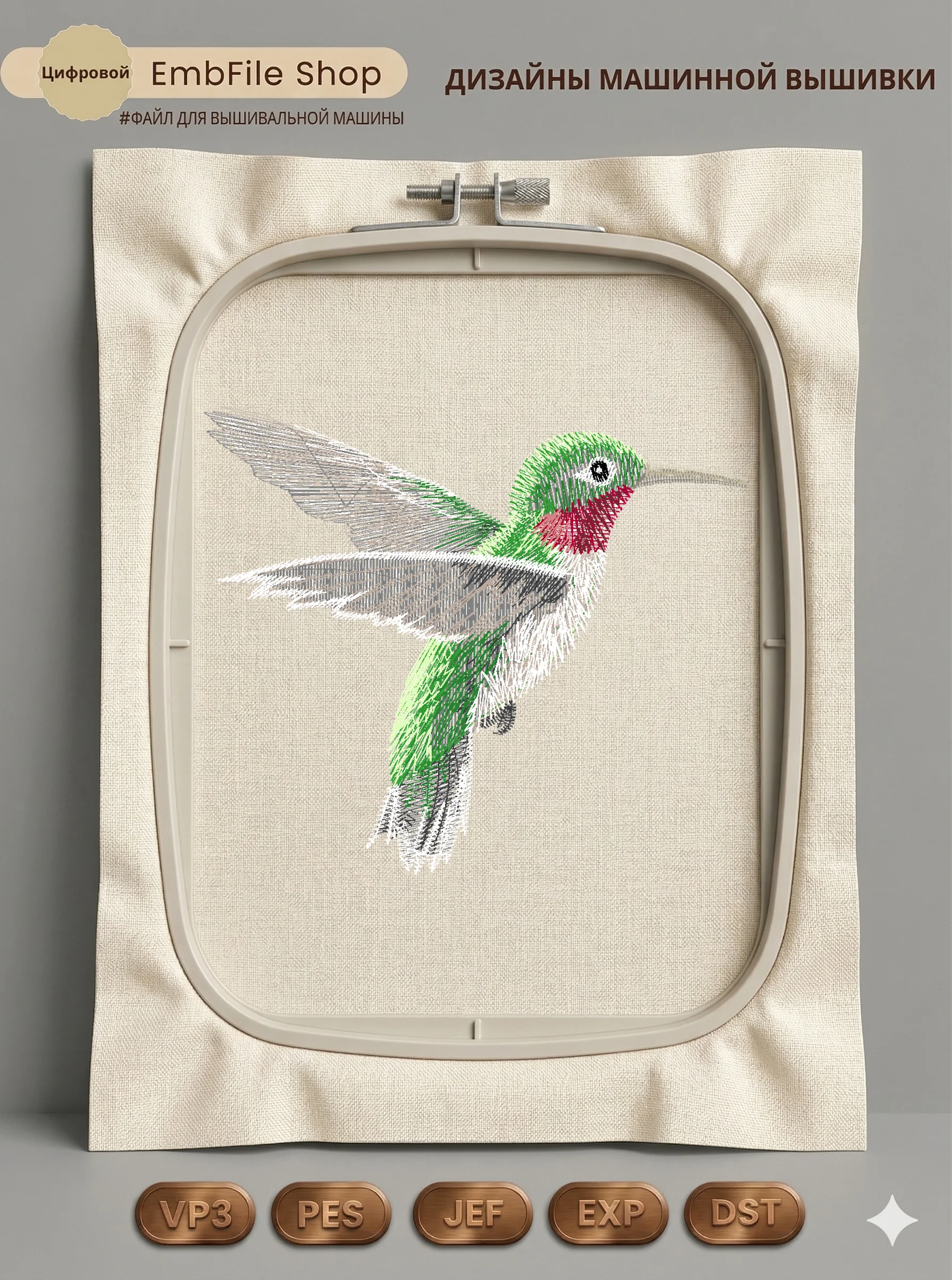 Это цифровой файл для вышивальной машины, а не физический товар (нашивка). Для работы с файлом вам необходимо иметь вышивальную машину и способ передачи файла на устройство (USB-флешка и т.д.).
