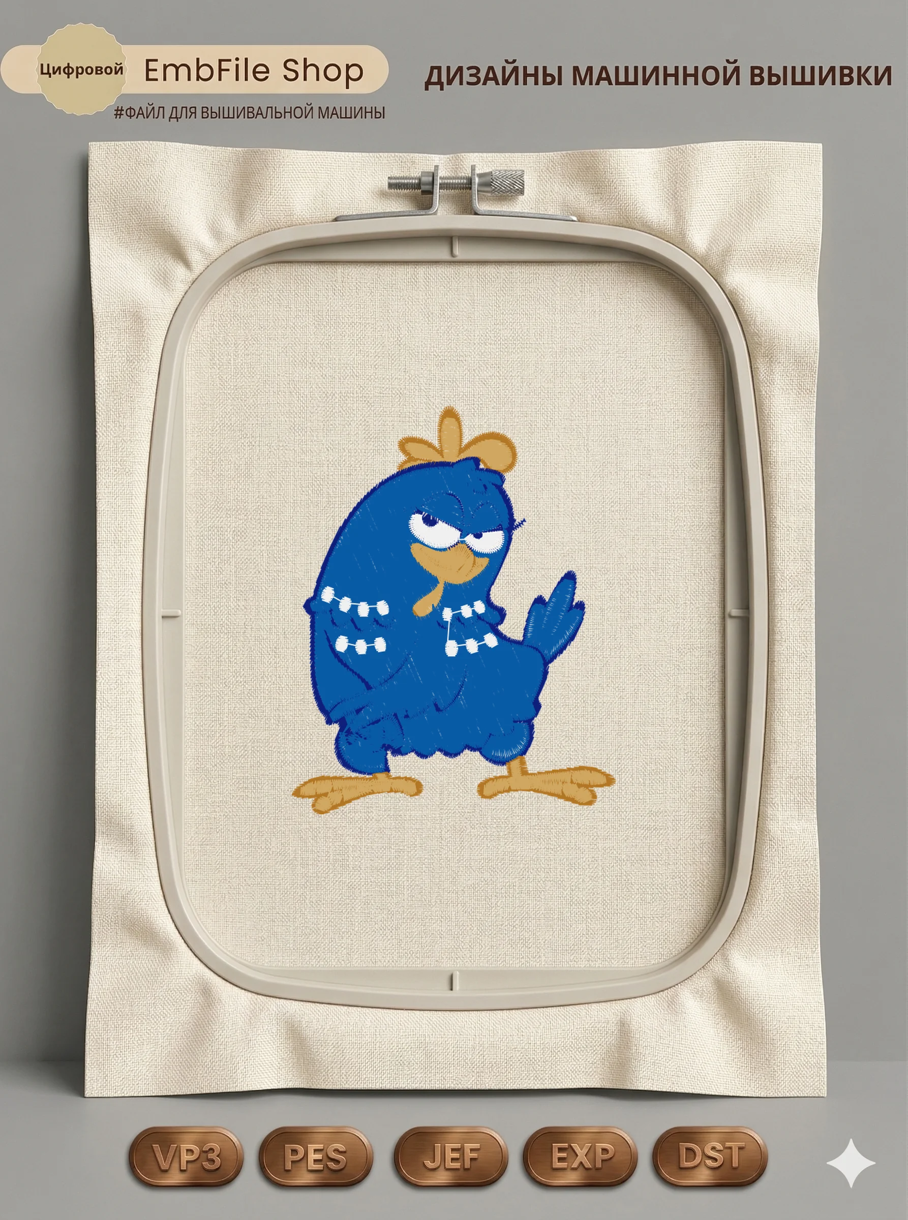 Это цифровой файл для вышивальной машины, а не физический товар (нашивка). Для работы с файлом вам необходимо иметь вышивальную машину и способ передачи файла на устройство (USB-флешка и т.д.).