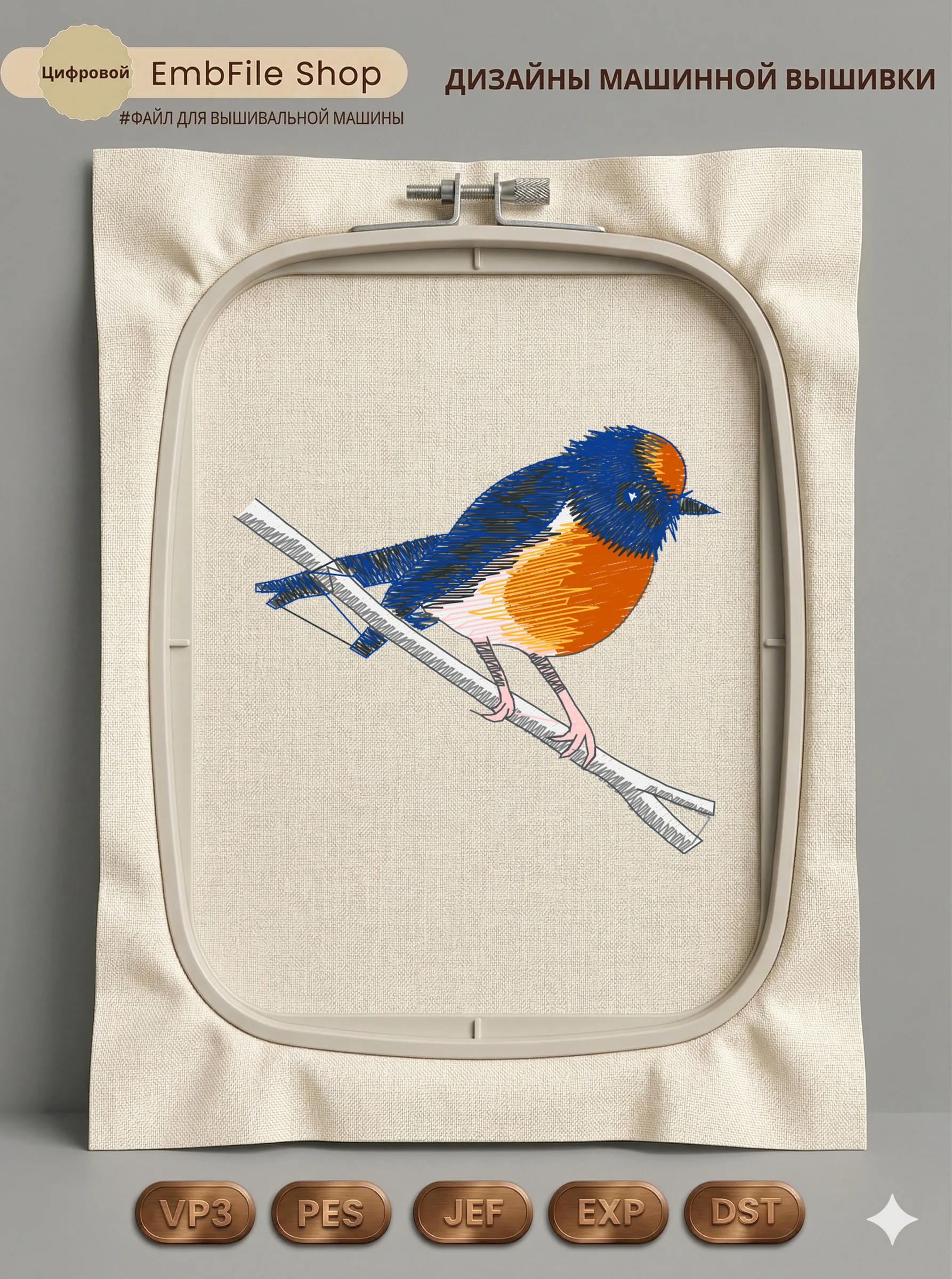 Дизайн протестирован на различных типах тканей, что гарантирует чистое и стабильное нанесение стежков.