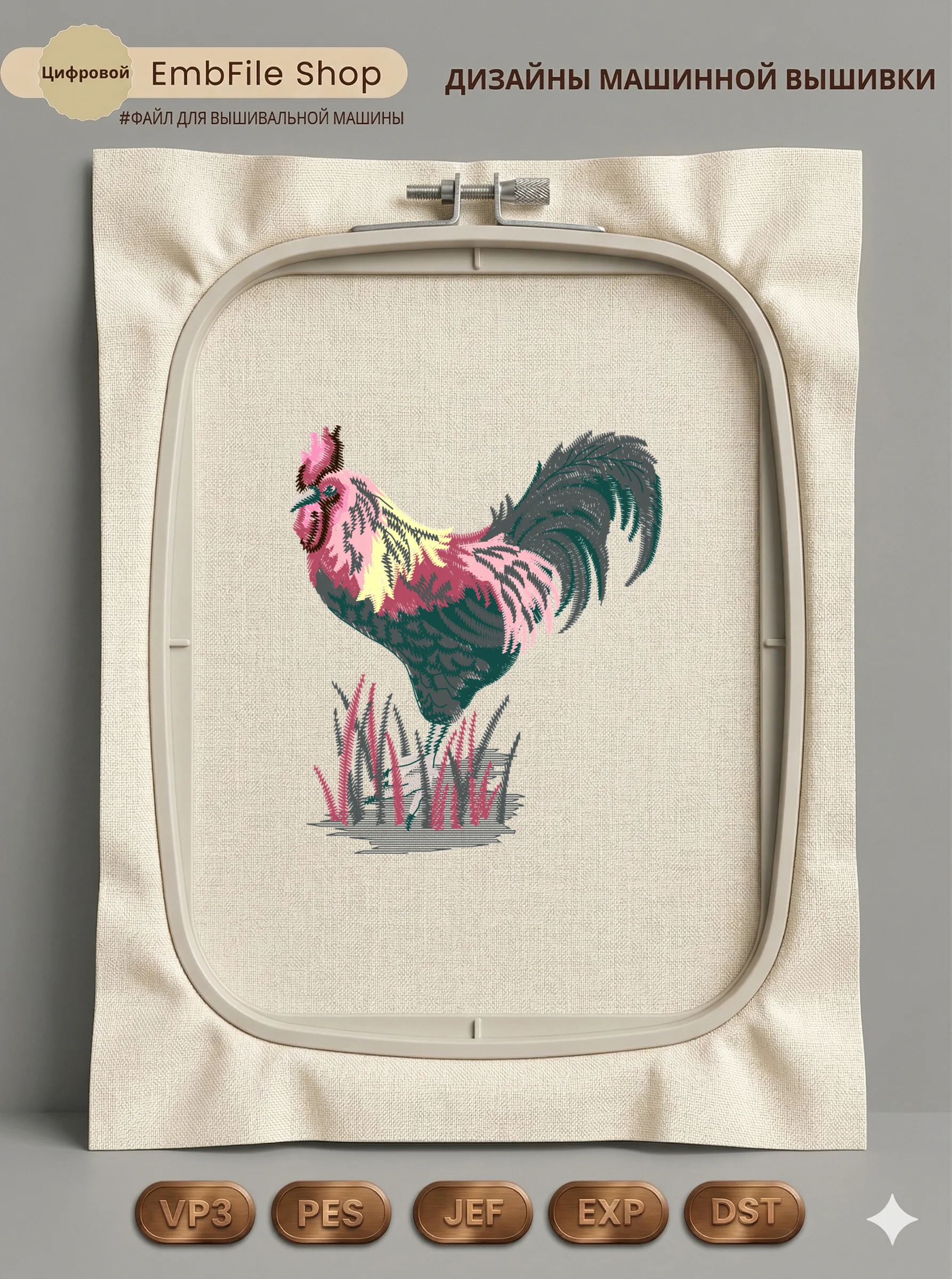Это цифровой файл для вышивальной машины, а не физический товар (нашивка). Для работы с файлом вам необходимо иметь вышивальную машину и способ передачи файла на устройство (USB-флешка и т.д.).