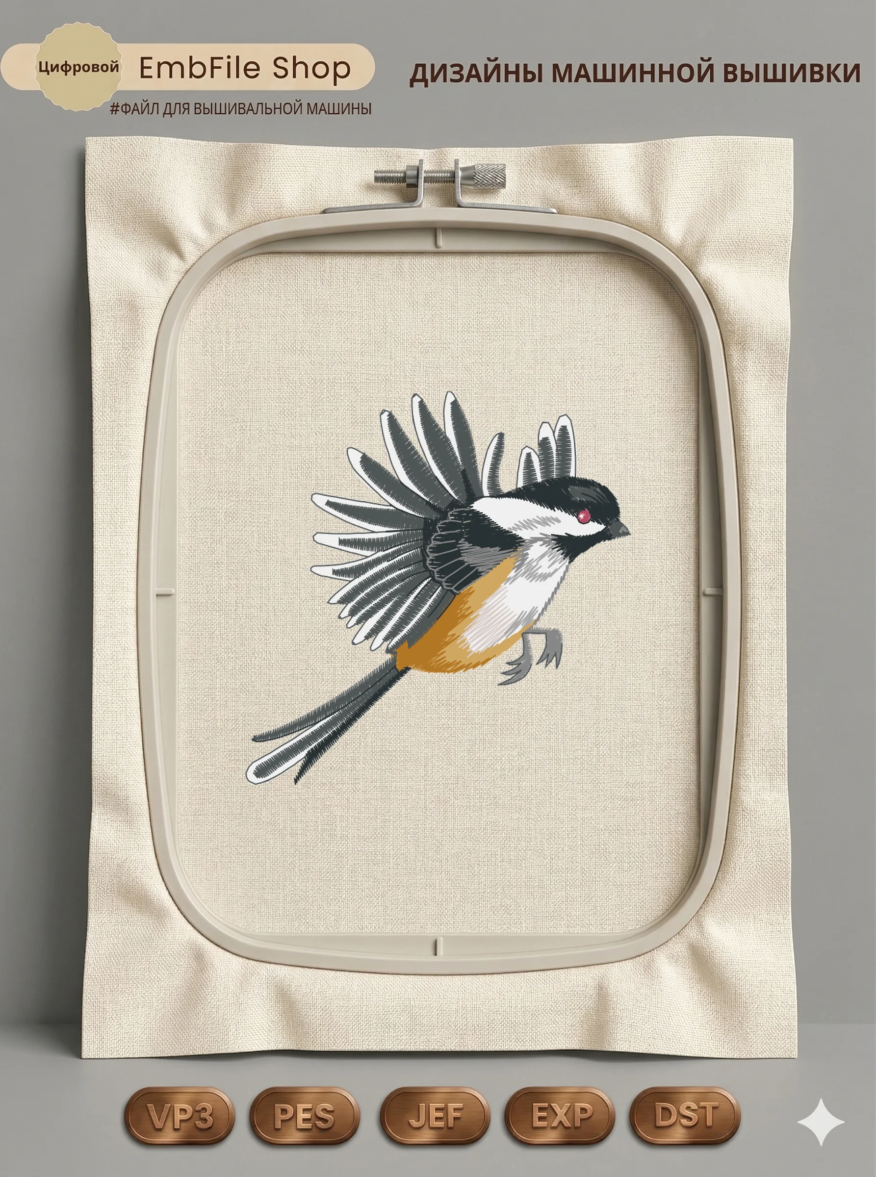 Дизайн протестирован на различных типах тканей, что гарантирует чистое и стабильное нанесение стежков.