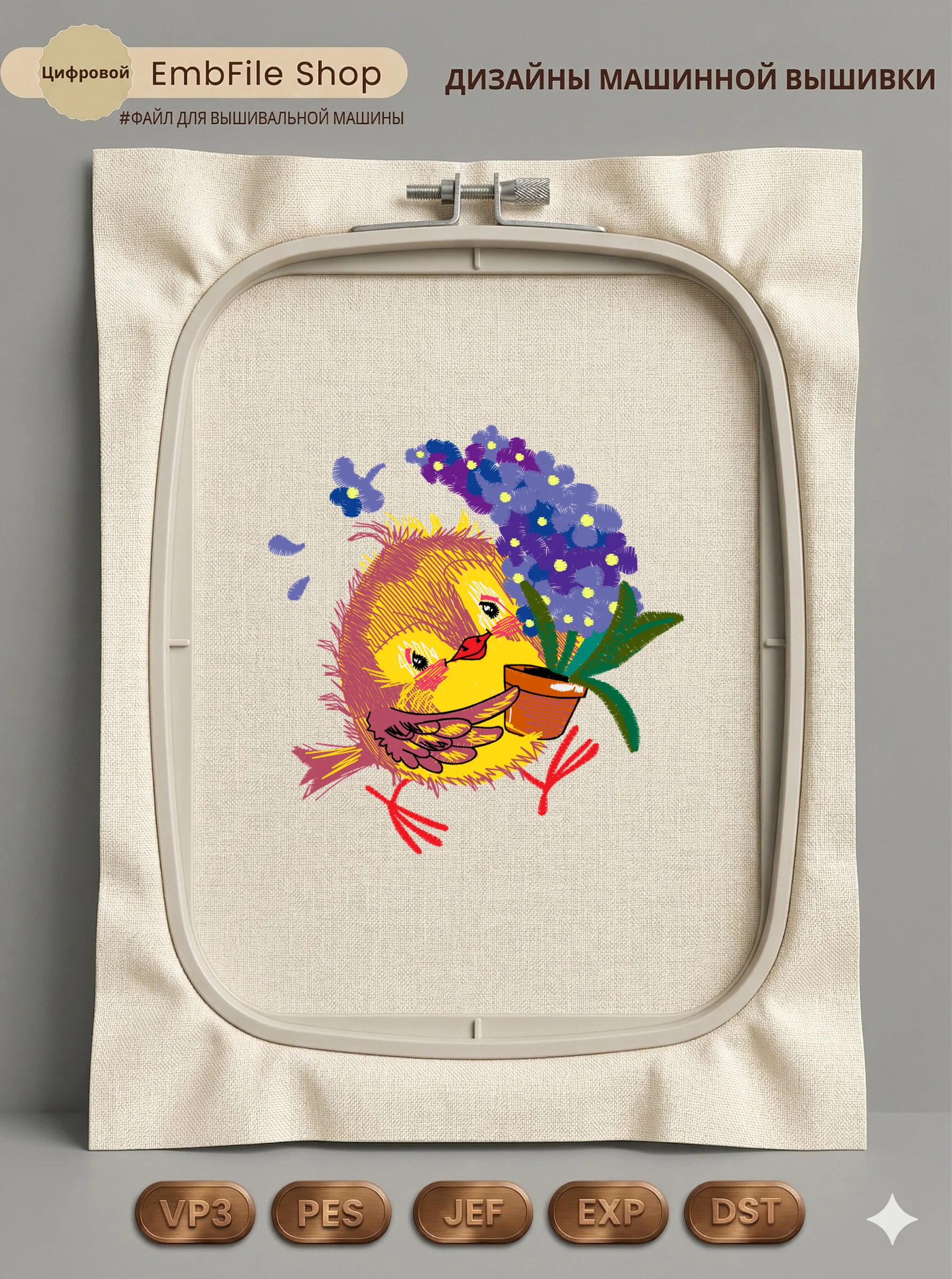 Это цифровой файл для вышивальной машины, а не физический товар (нашивка). Для работы с файлом вам необходимо иметь вышивальную машину и способ передачи файла на устройство (USB-флешка и т.д.).