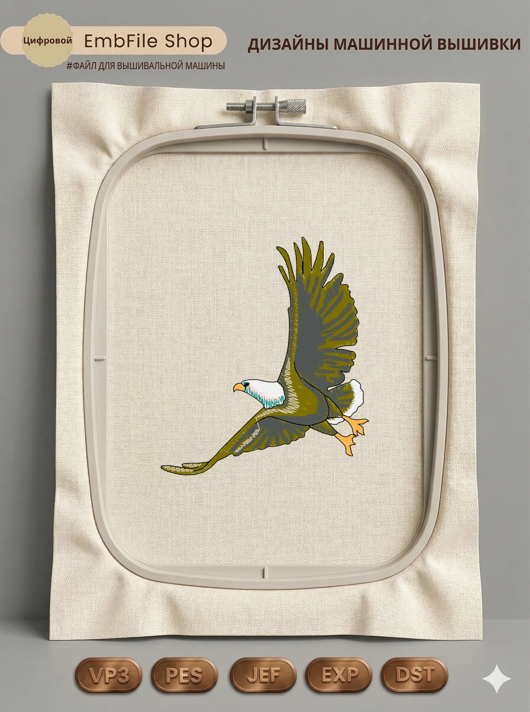 Это цифровой файл для вышивальной машины, а не физический товар (нашивка). Для работы с файлом вам необходимо иметь вышивальную машину и способ передачи файла на устройство (USB-флешка и т.д.).