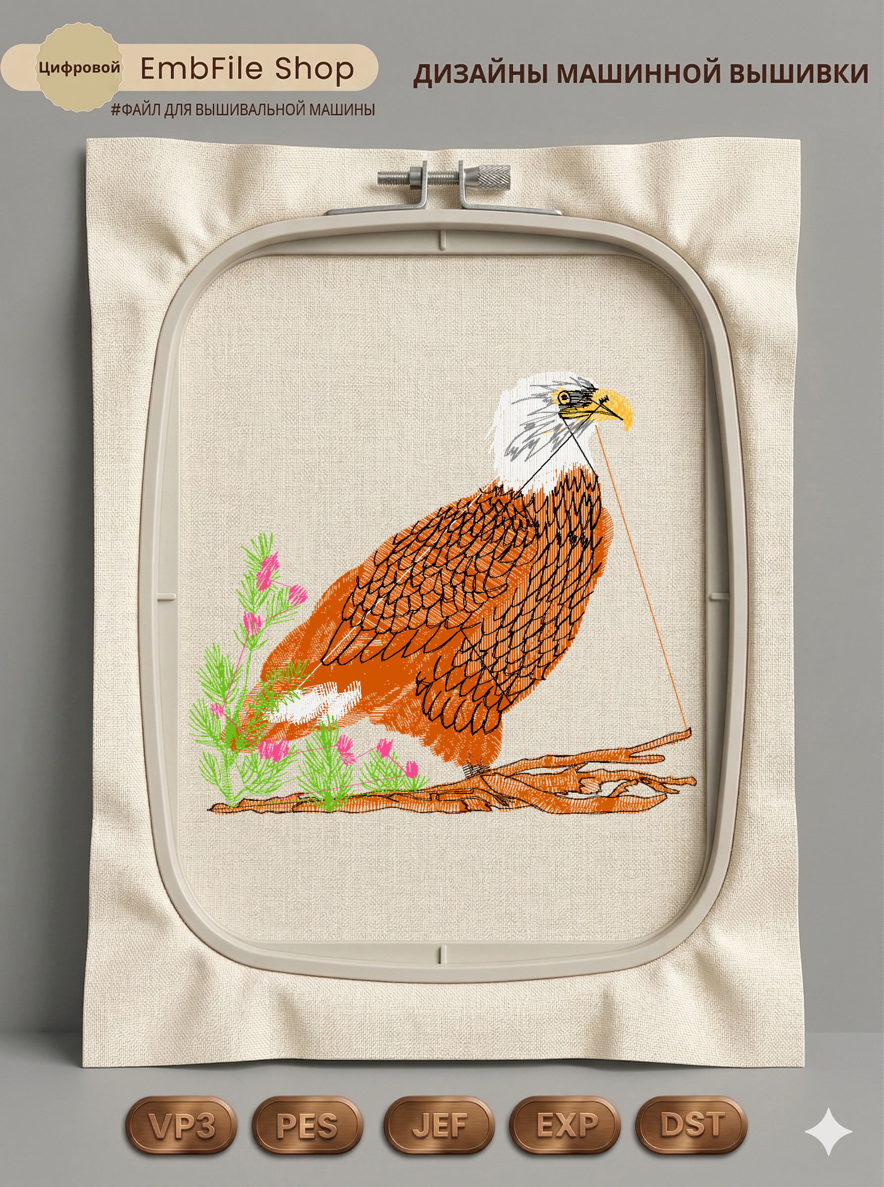Это цифровой файл для вышивальной машины, а не физический товар (нашивка). Для работы с файлом вам необходимо иметь вышивальную машину и способ передачи файла на устройство (USB-флешка и т.д.).