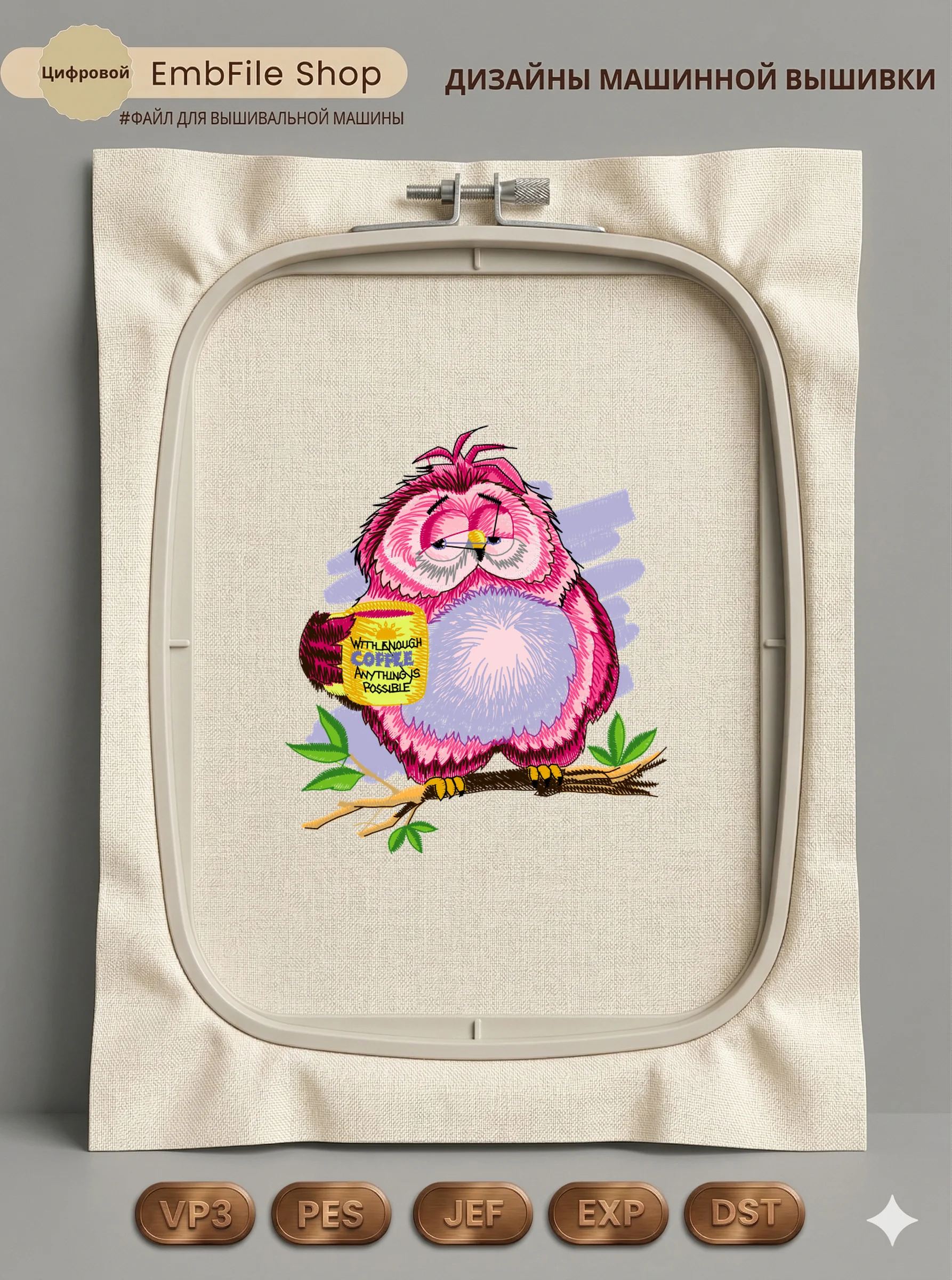 Это цифровой файл для вышивальной машины, а не физический товар (нашивка). Для работы с файлом вам необходимо иметь вышивальную машину и способ передачи файла на устройство (USB-флешка и т.д.).