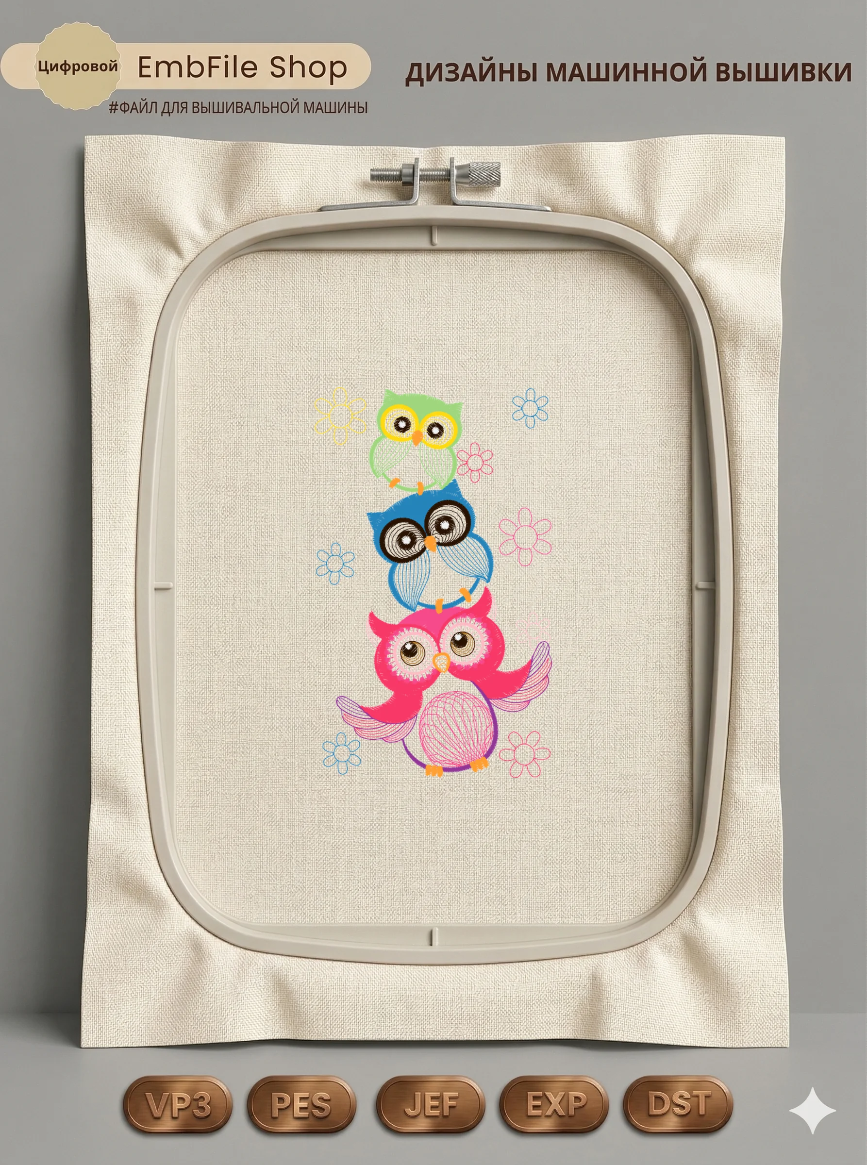 Это цифровой файл для вышивальной машины, а не физический товар (нашивка). Для работы с файлом вам необходимо иметь вышивальную машину и способ передачи файла на устройство (USB-флешка и т.д.).