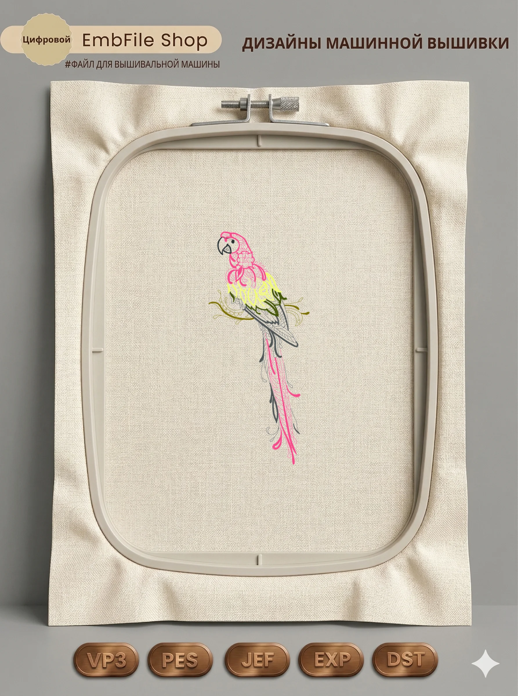 Дизайн протестирован на различных типах тканей, что гарантирует чистое и стабильное нанесение стежков.