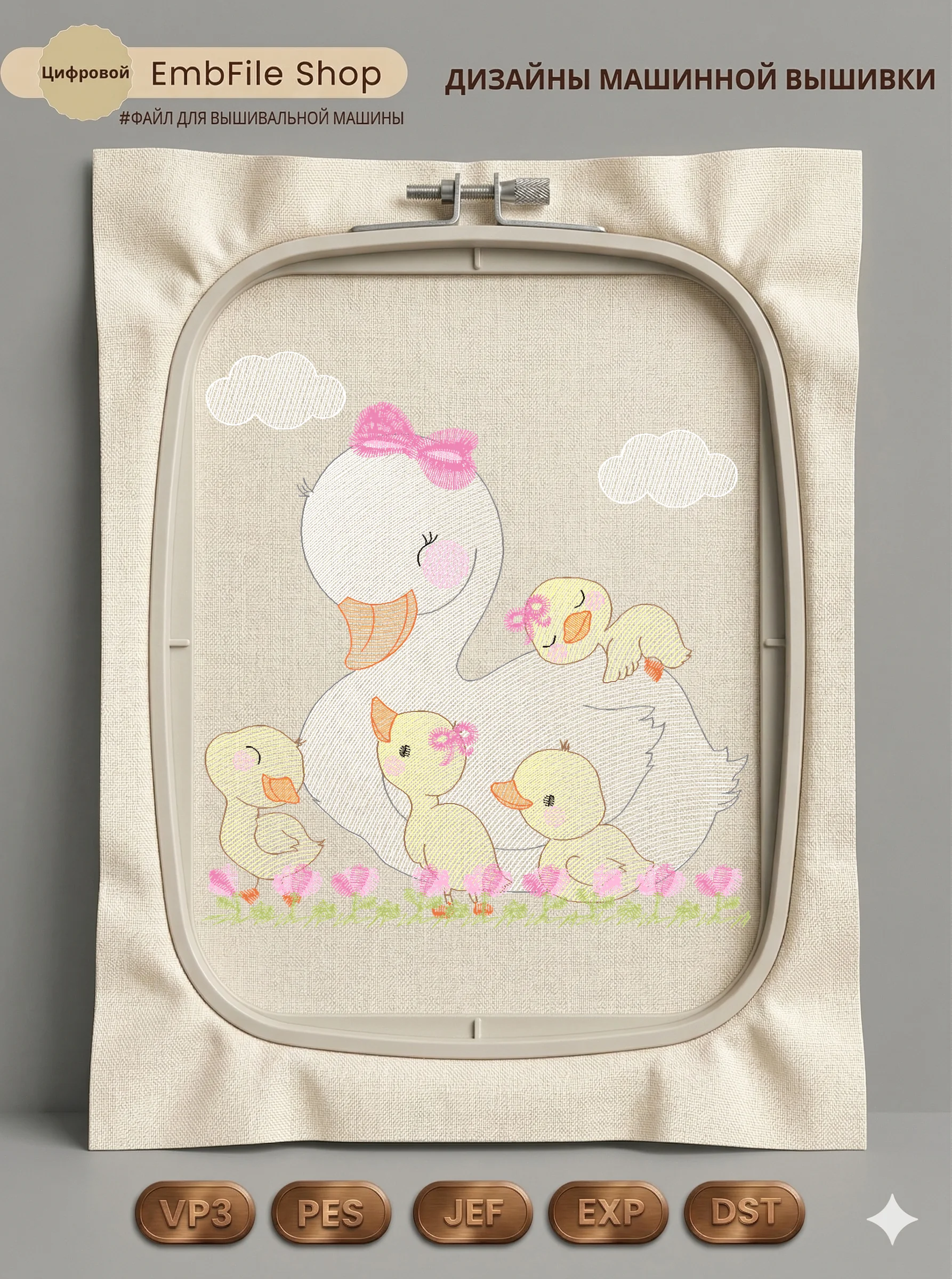 Дизайн протестирован на различных типах тканей, что гарантирует чистое и стабильное нанесение стежков.