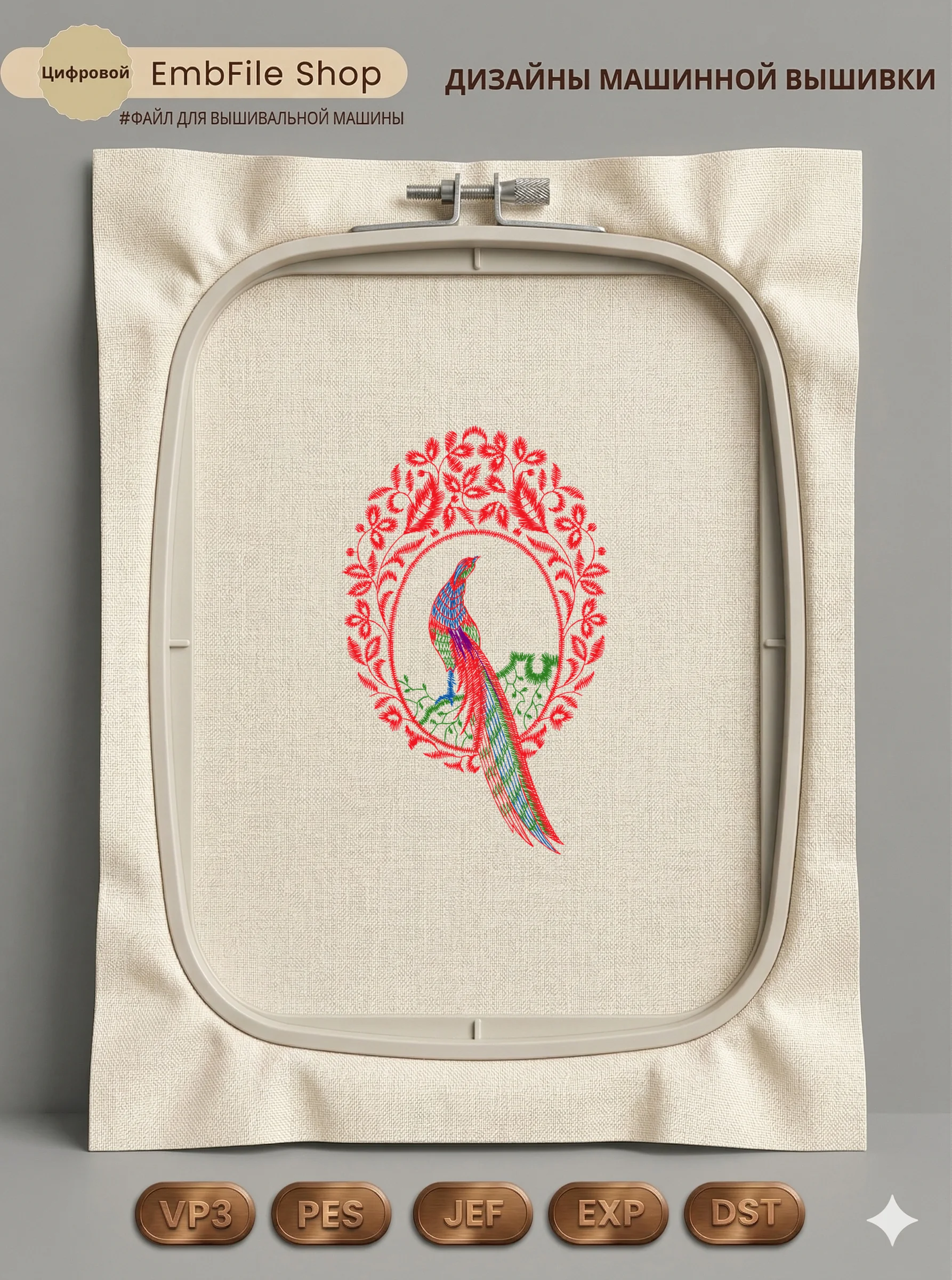 Это цифровой файл для вышивальной машины, а не физический товар (нашивка). Для работы с файлом вам необходимо иметь вышивальную машину и способ передачи файла на устройство (USB-флешка и т.д.).