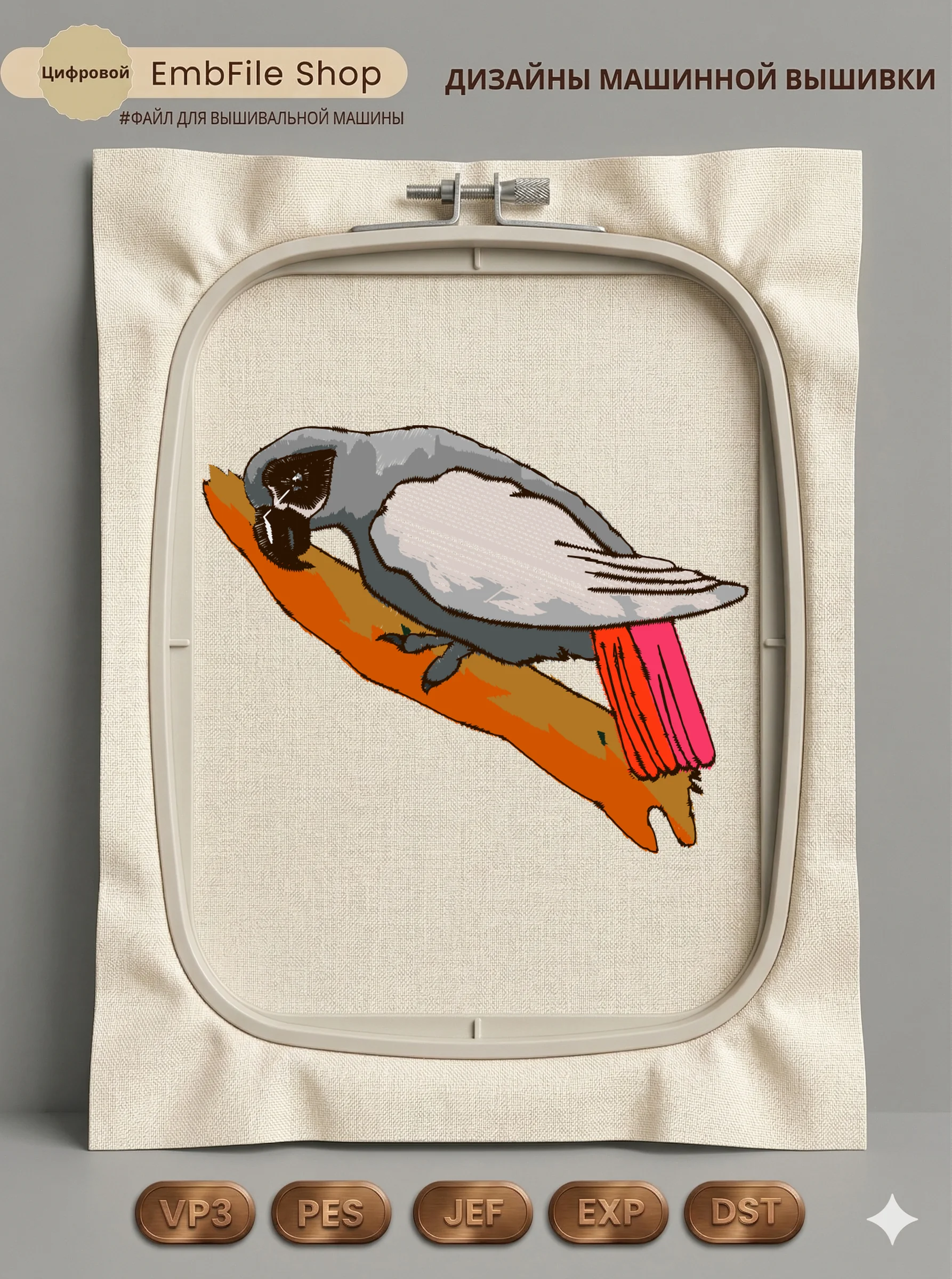 Это цифровой файл для вышивальной машины, а не физический товар (нашивка). Для работы с файлом вам необходимо иметь вышивальную машину и способ передачи файла на устройство (USB-флешка и т.д.).