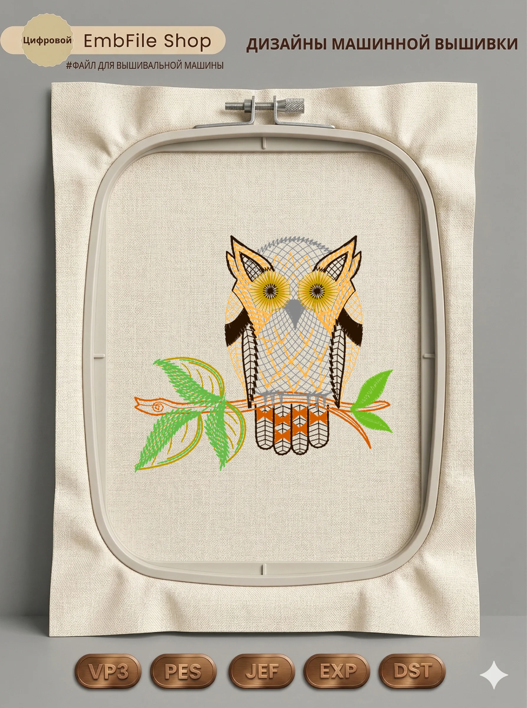Это цифровой файл для вышивальной машины, а не физический товар (нашивка). Для работы с файлом вам необходимо иметь вышивальную машину и способ передачи файла на устройство (USB-флешка и т.д.).