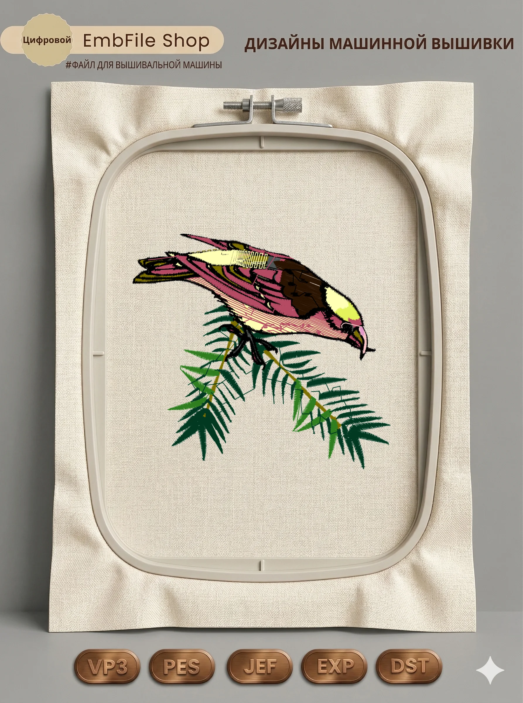 Это цифровой файл для вышивальной машины, а не физический товар (нашивка). Для работы с файлом вам необходимо иметь вышивальную машину и способ передачи файла на устройство (USB-флешка и т.д.).