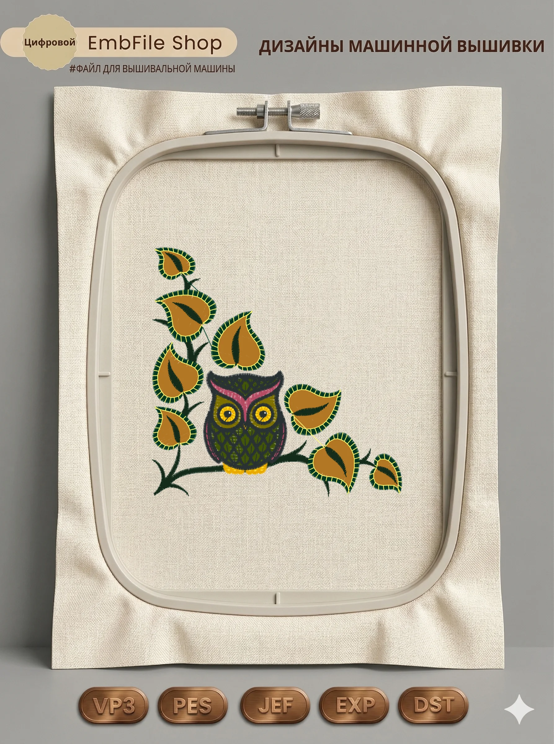 Это цифровой файл для вышивальной машины, а не физический товар (нашивка). Для работы с файлом вам необходимо иметь вышивальную машину и способ передачи файла на устройство (USB-флешка и т.д.).