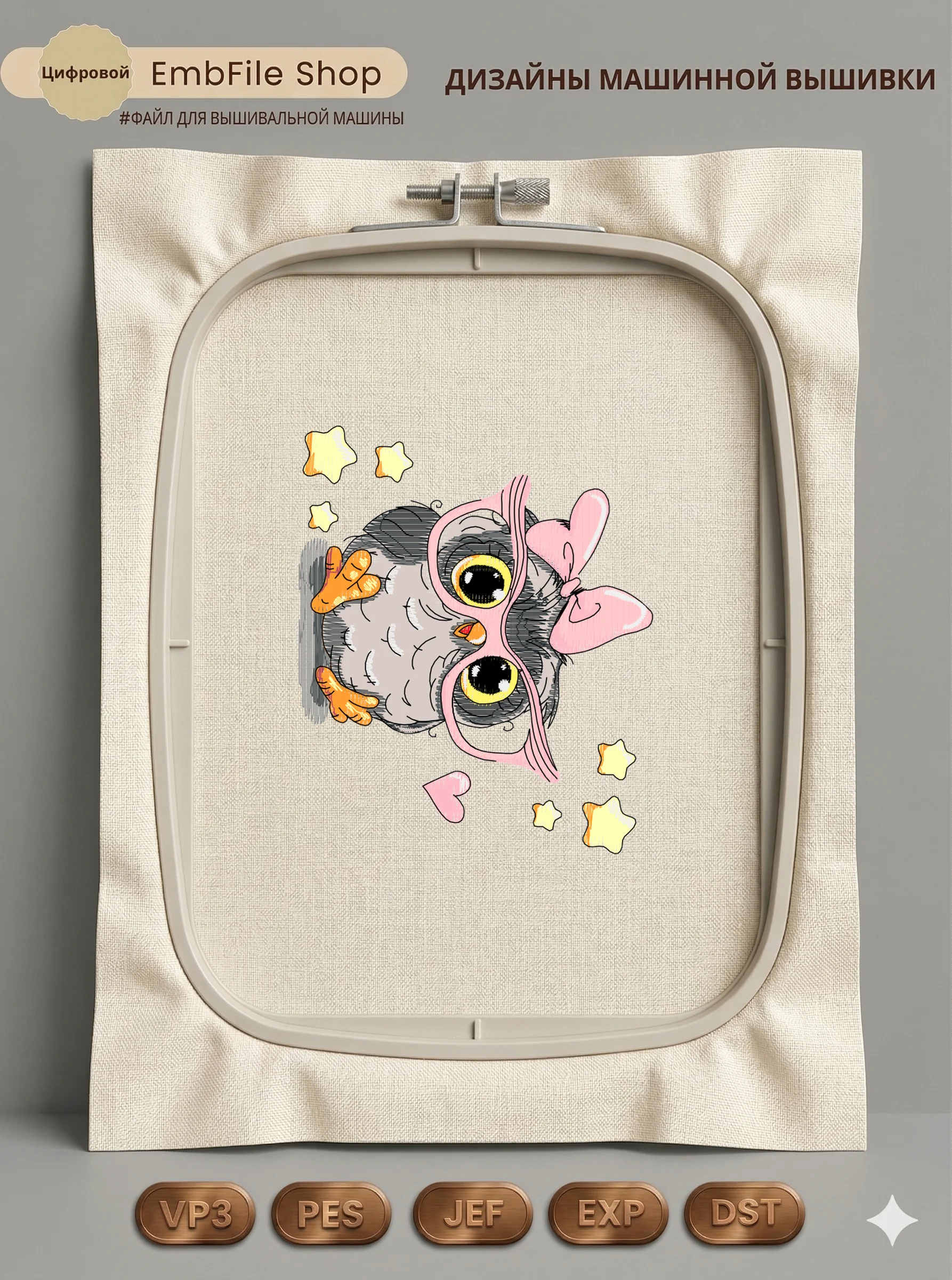 Это цифровой файл для вышивальной машины, а не физический товар (нашивка). Для работы с файлом вам необходимо иметь вышивальную машину и способ передачи файла на устройство (USB-флешка и т.д.).