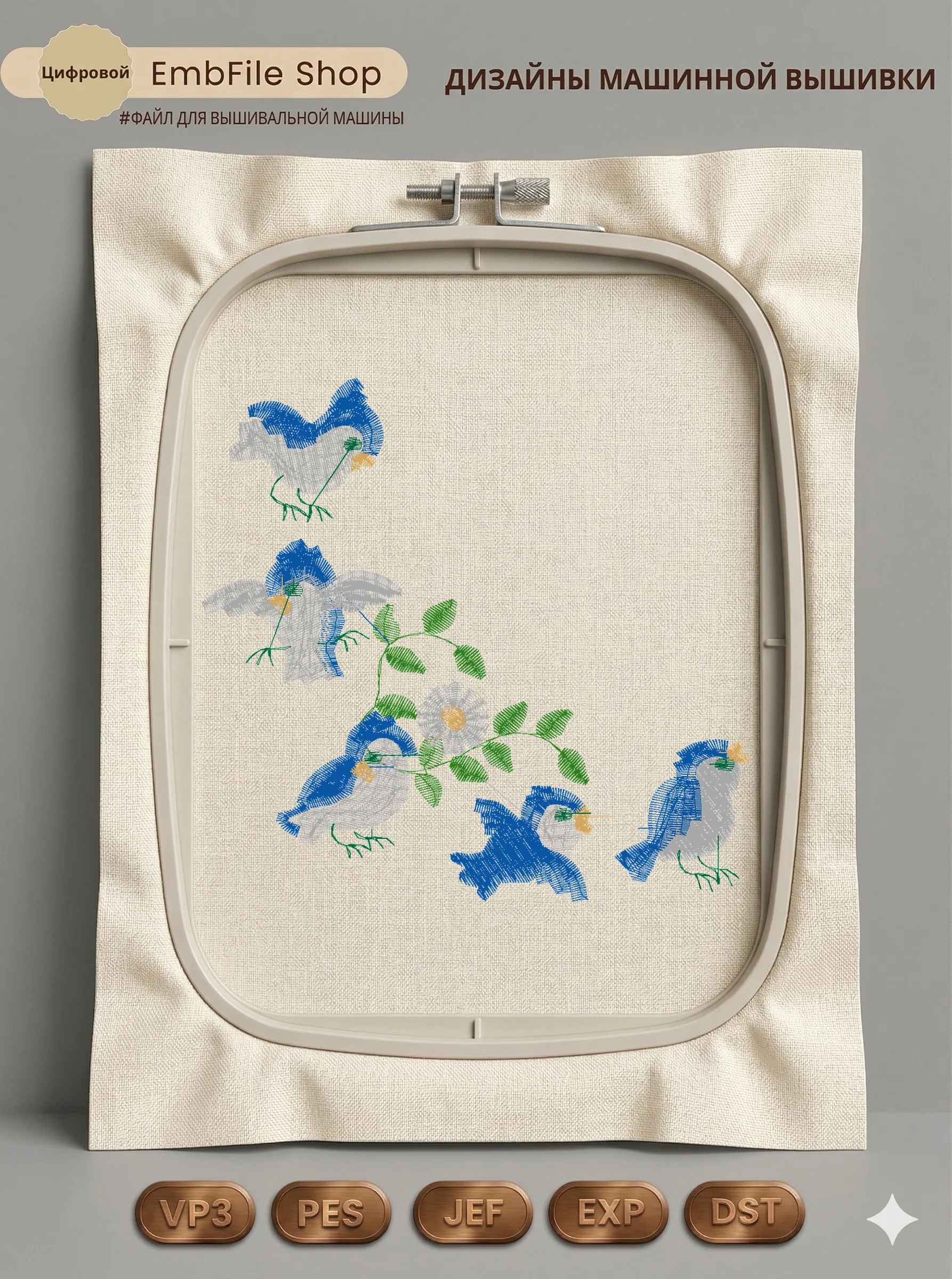 Дизайн протестирован на различных типах тканей, что гарантирует чистое и стабильное нанесение стежков.