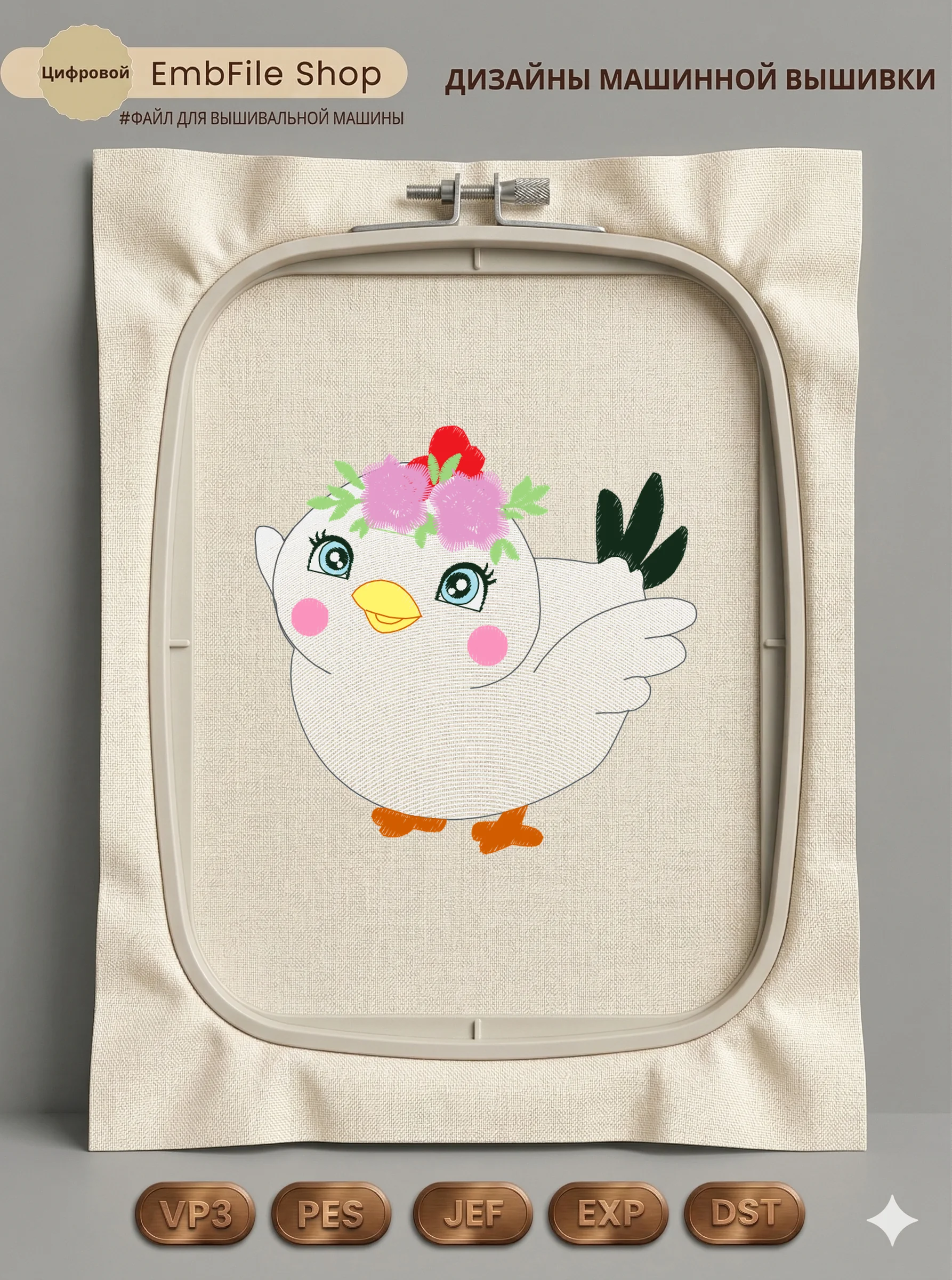 Это цифровой файл для вышивальной машины, а не физический товар (нашивка). Для работы с файлом вам необходимо иметь вышивальную машину и способ передачи файла на устройство (USB-флешка и т.д.).